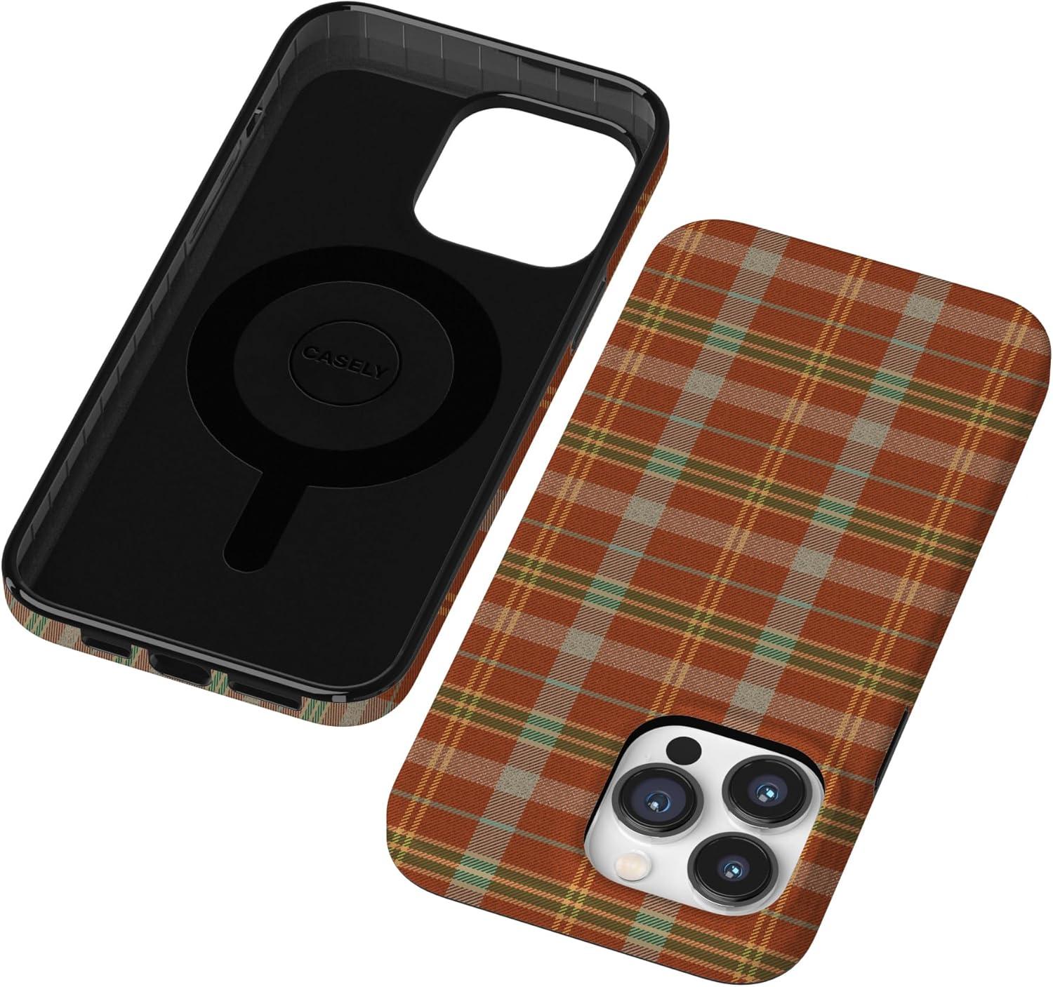 Casely iPhone 14 Pro Case | Sage Garden | Green Floral | Compatible with MagSafe | Classic Ultra-Slim Case Design(Spiced Chai | Fall Plaid)