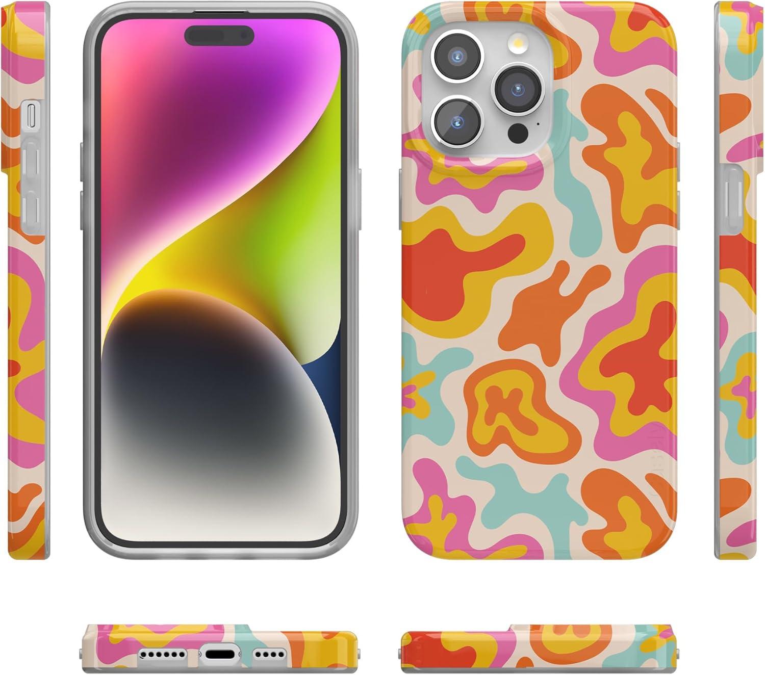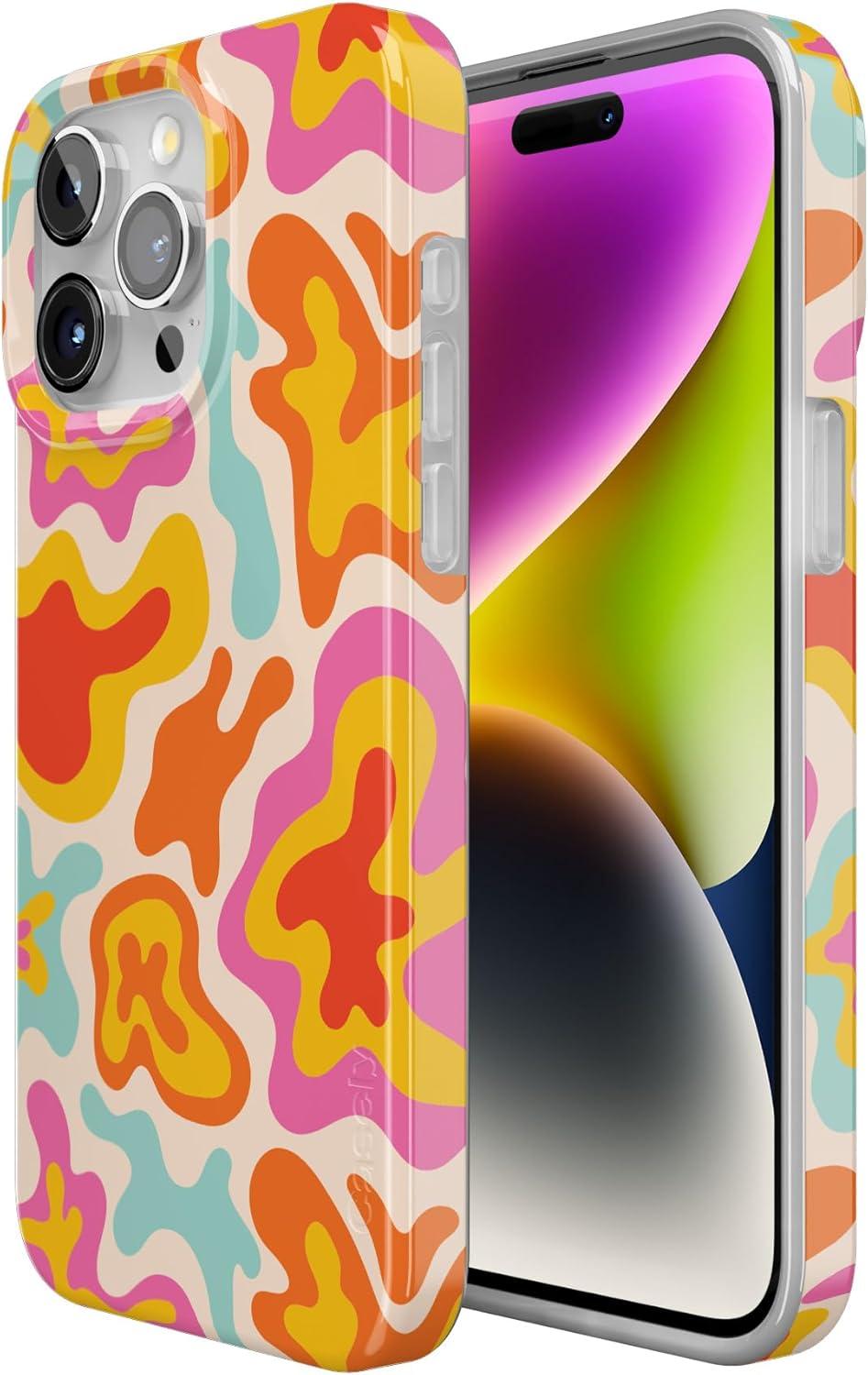 Casely iPhone 14 Pro Case | Sage Garden | Green Floral | Compatible with MagSafe | Classic Ultra-Slim Case Design(Tropical Color Splash | Abstract Retro)