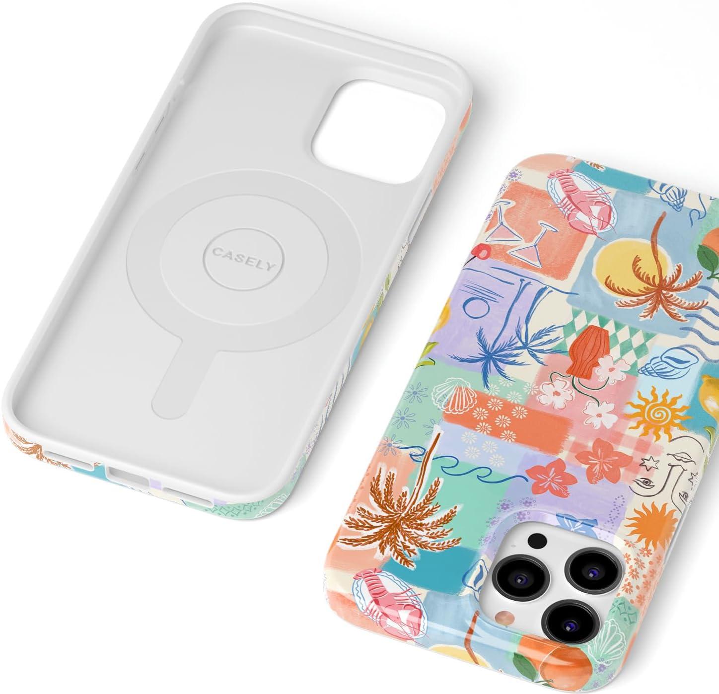 Casely iPhone 14 Pro Case | Sage Garden | Green Floral | Compatible with MagSafe | Classic Ultra-Slim Case Design(Tropical Heat | Beachy Collage)