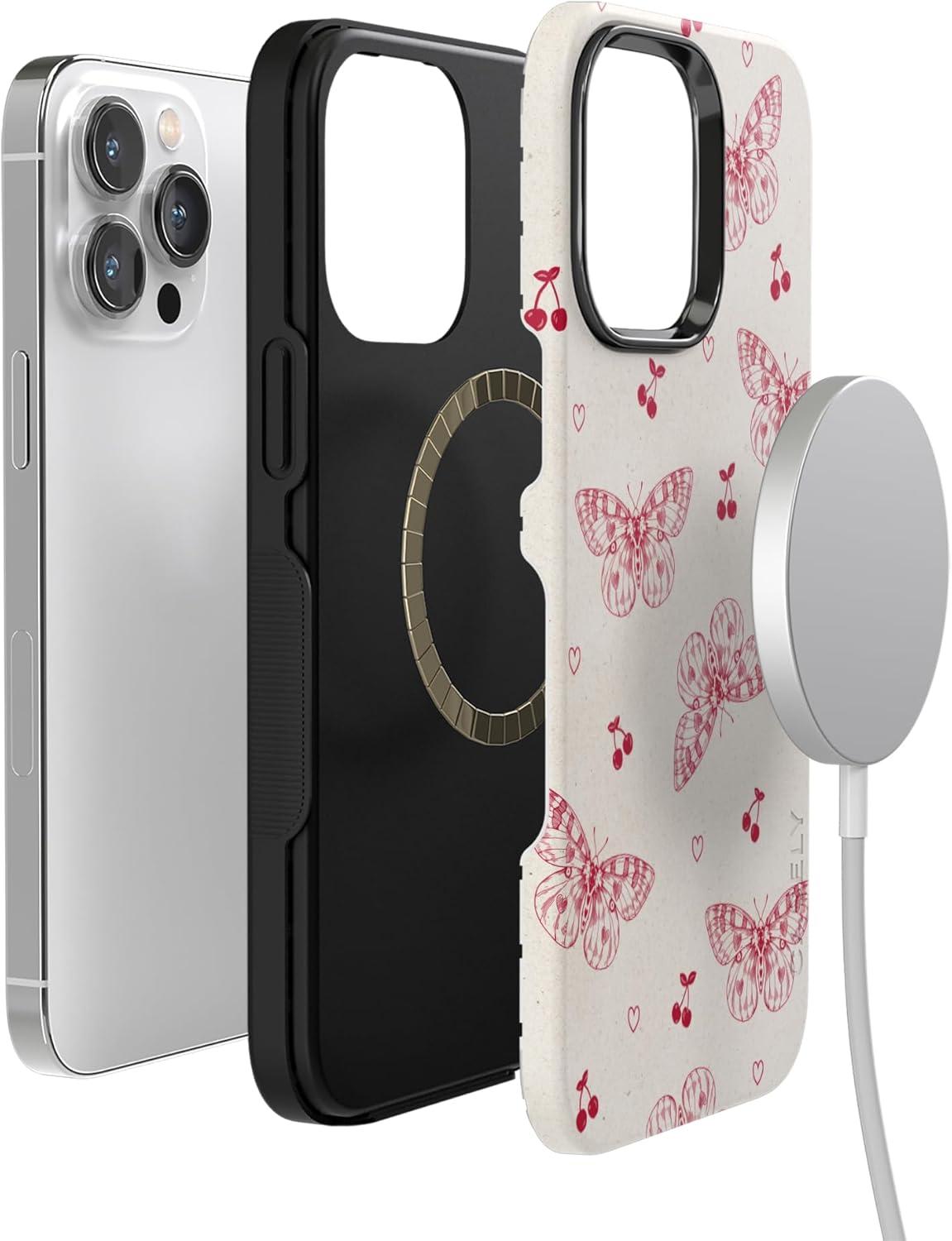 Casely iPhone 14 Pro Max Case | Blue Stripes | Sunday Best | Bold Protective Design | Compatible with MagSafe(Heart Flutters | Butterfly)