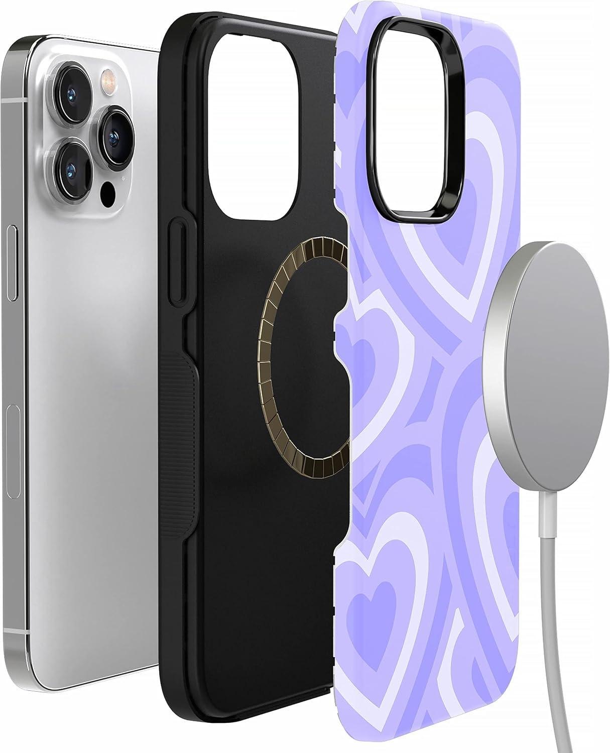 Casely iPhone 14 Pro Max Case | Blue Stripes | Sunday Best | Bold Protective Design | Compatible with MagSafe(Love Song | Lavender Heart)
