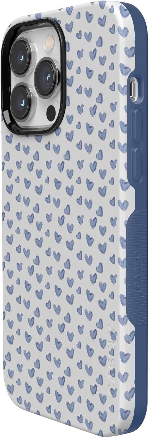 Casely iPhone 14 Pro Max Case | Blue Stripes | Sunday Best | Bold Protective Design | Compatible with MagSafe(Lovebug | Blue Hearts)