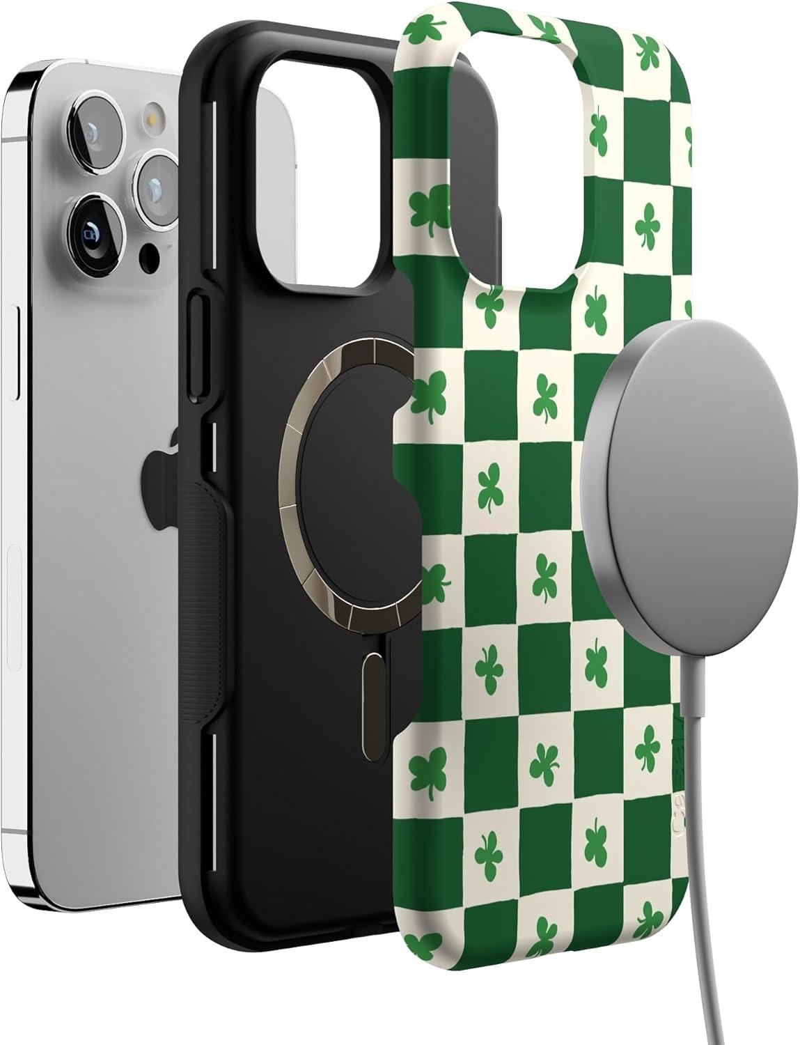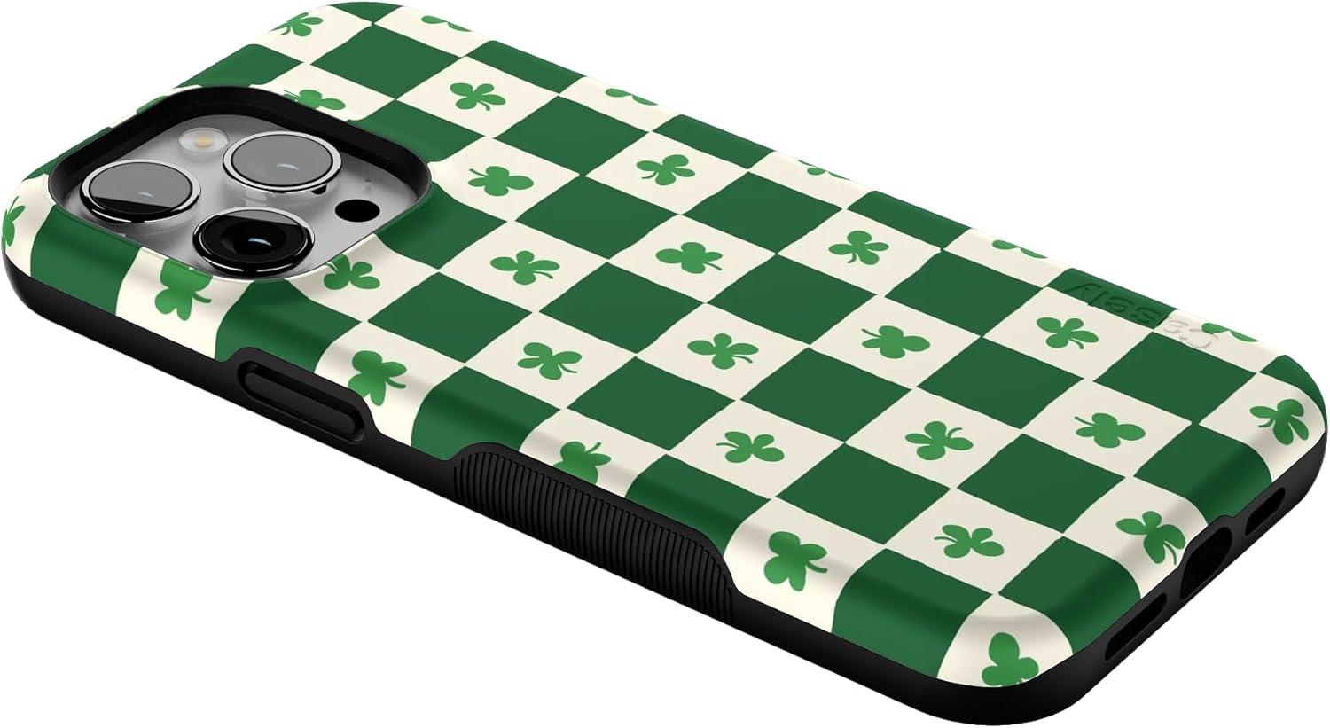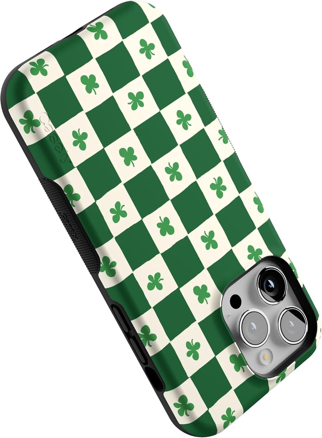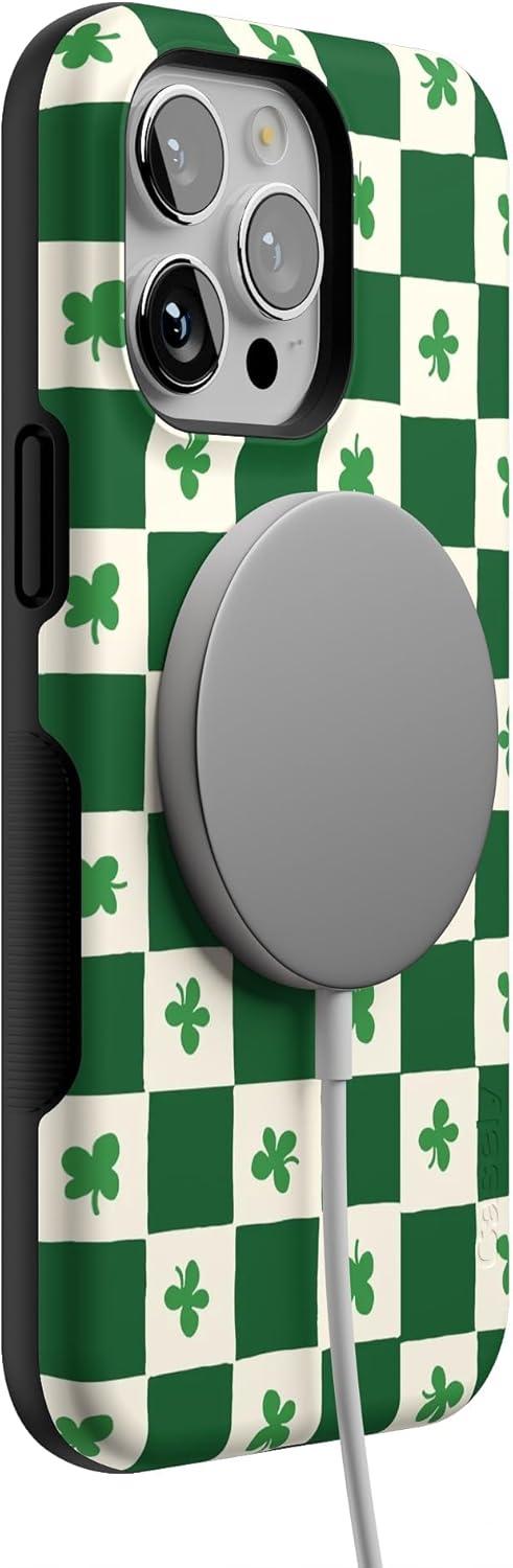 Casely iPhone 14 Pro Max Case | Blue Stripes | Sunday Best | Bold Protective Design | Compatible with MagSafe(Lucky You | Shamrock)