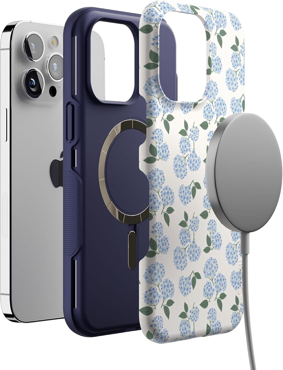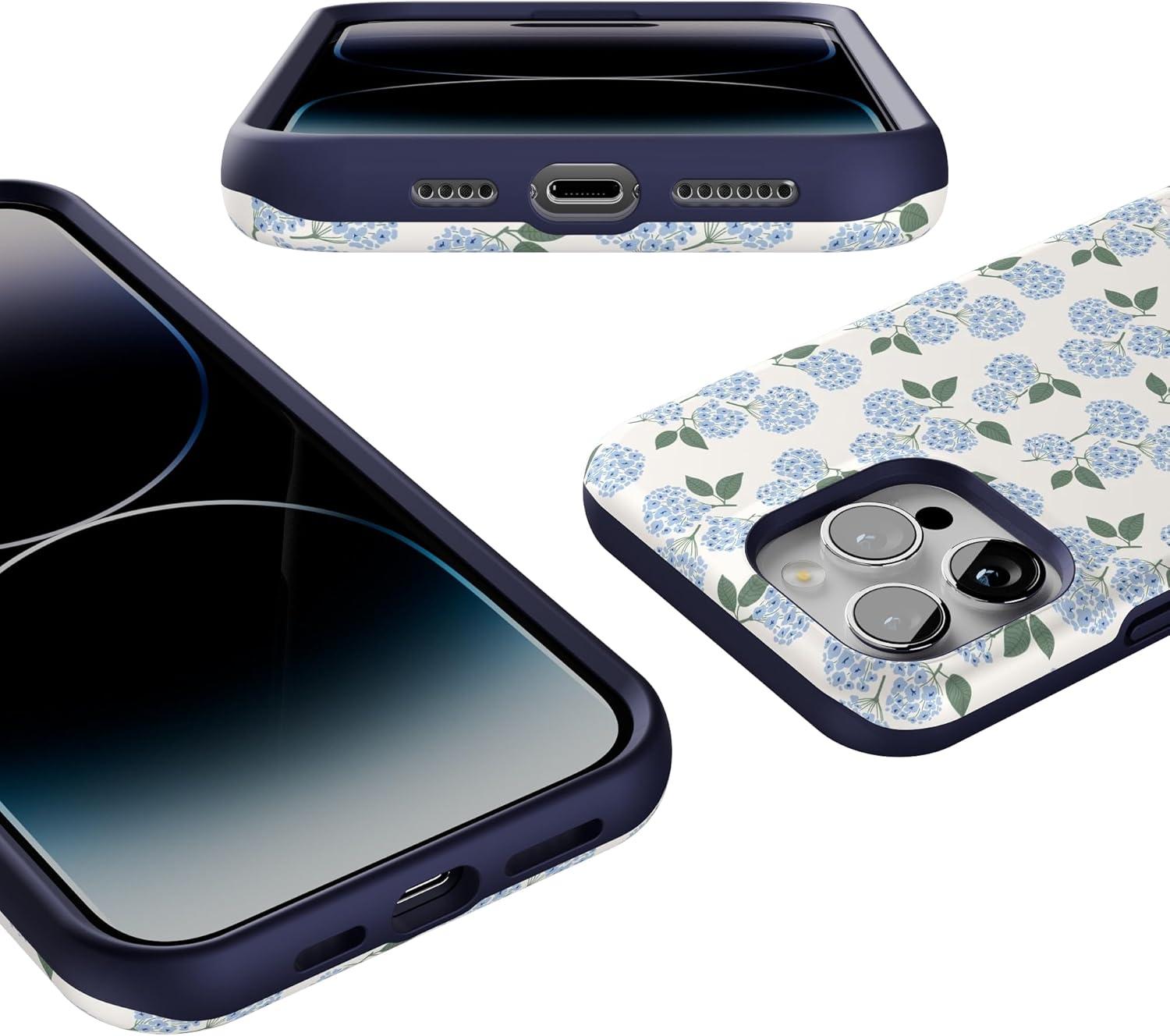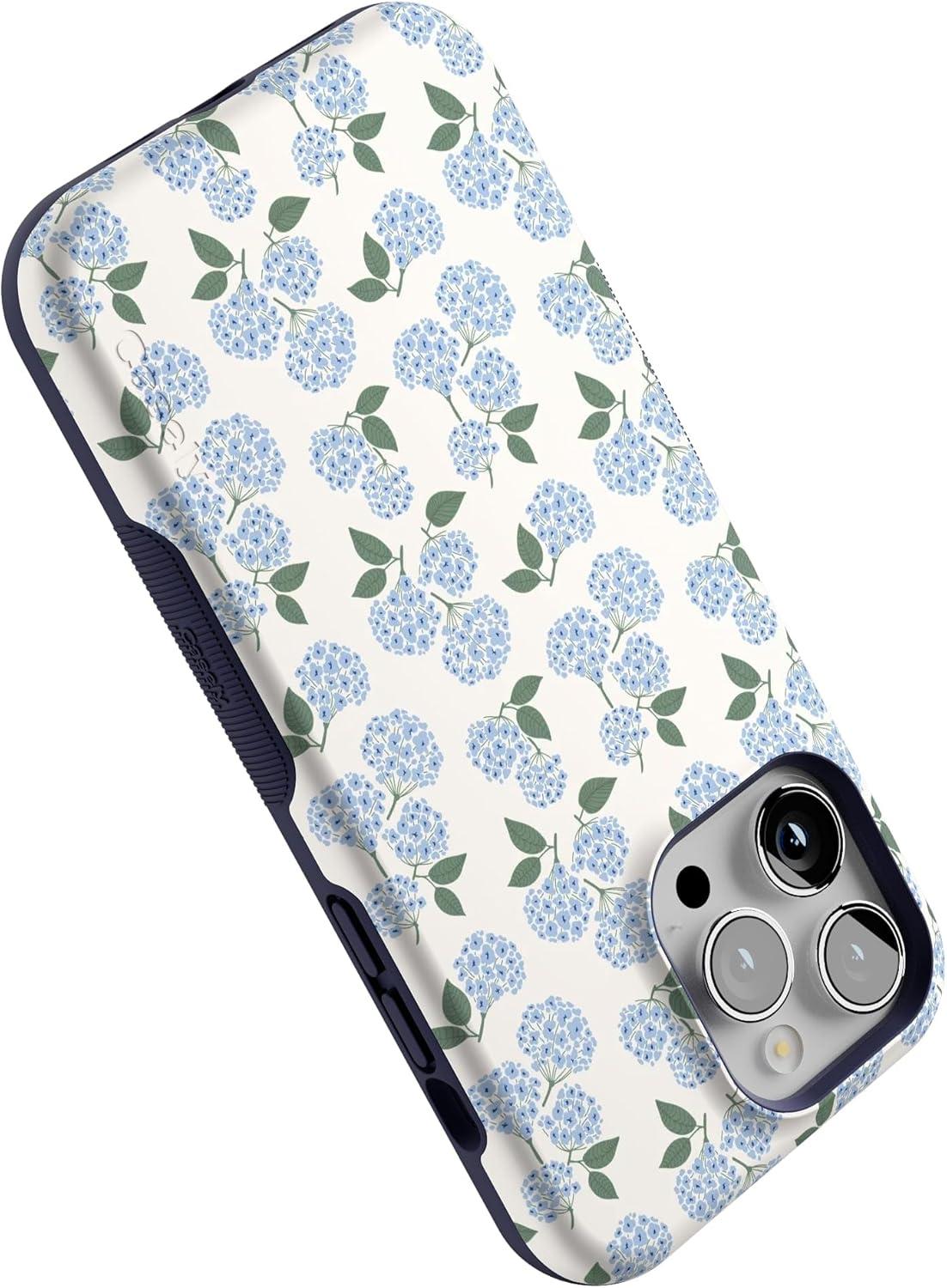 Casely iPhone 14 Pro Max Case | Blue Stripes | Sunday Best | Bold Protective Design | Compatible with MagSafe(Nantucket Cottage | Blue Hydrangea)