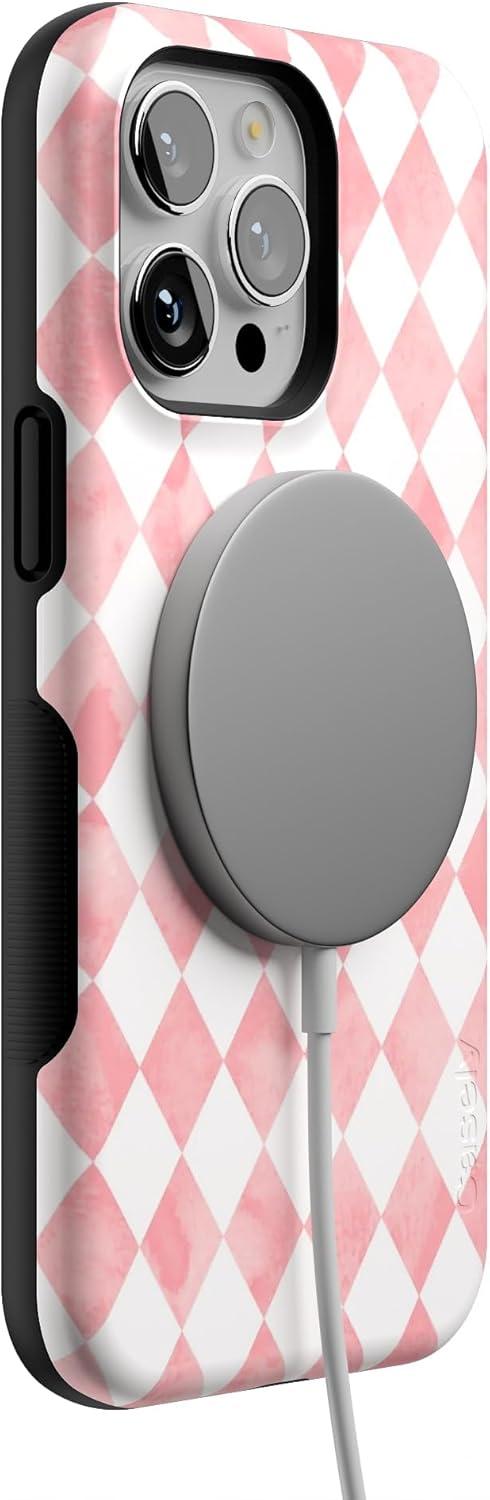 Casely iPhone 14 Pro Max Case | Blue Stripes | Sunday Best | Bold Protective Design | Compatible with MagSafe(Queen of Diamonds | Pink Watercolor)