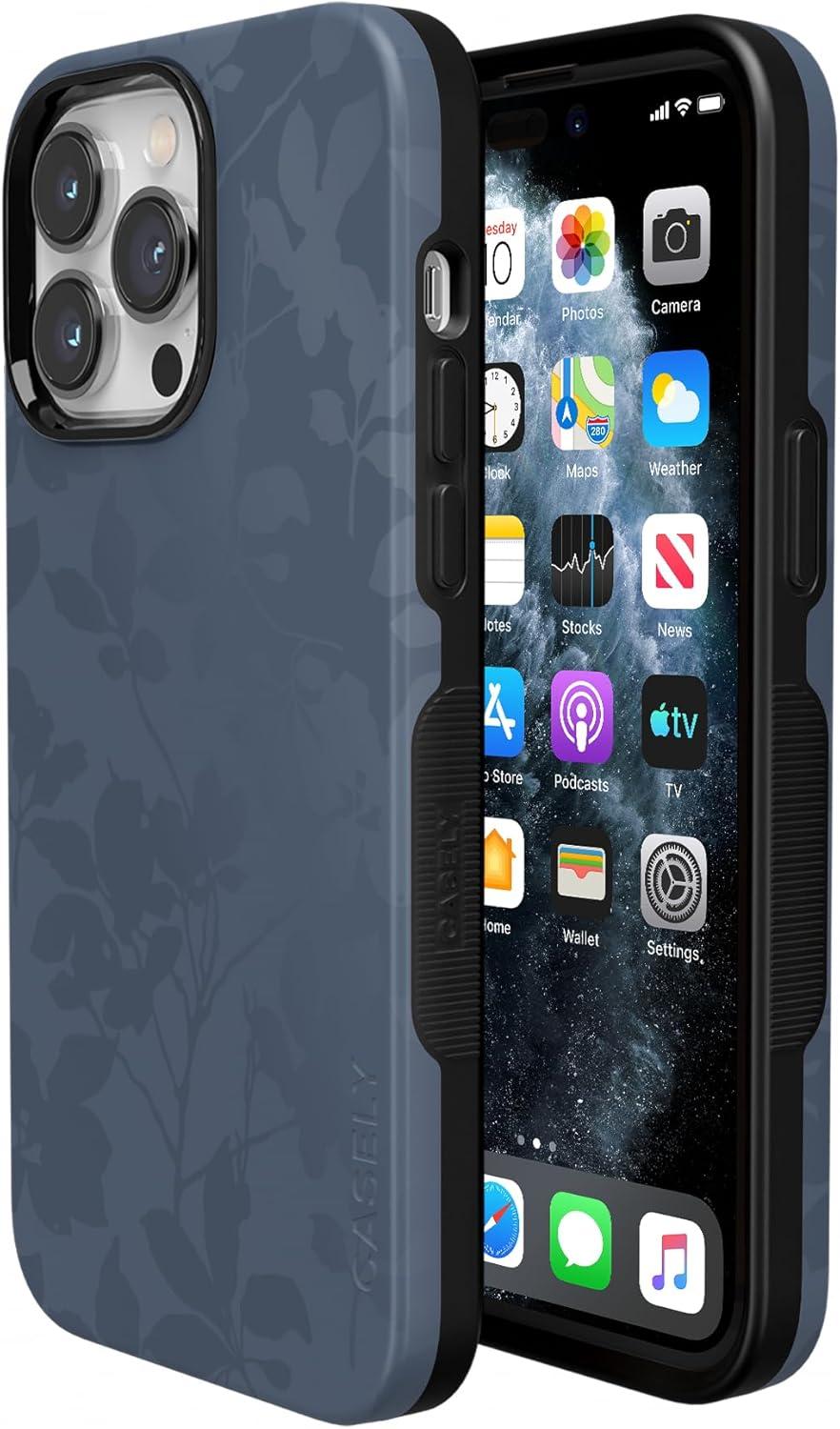 Casely iPhone 14 Pro Max Case | Blue Stripes | Sunday Best | Bold Protective Design | Compatible with MagSafe(Twilight Flora | Moody Monochrome)