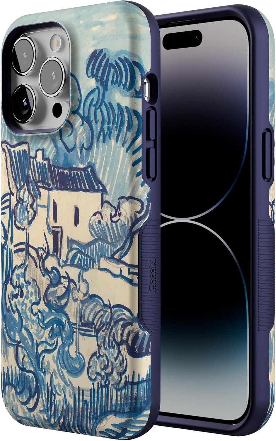 Casely iPhone 14 Pro Max Case | Blue Stripes | Sunday Best | Bold Protective Design | Compatible with MagSafe(Van Gogh | Landscape With Houses)