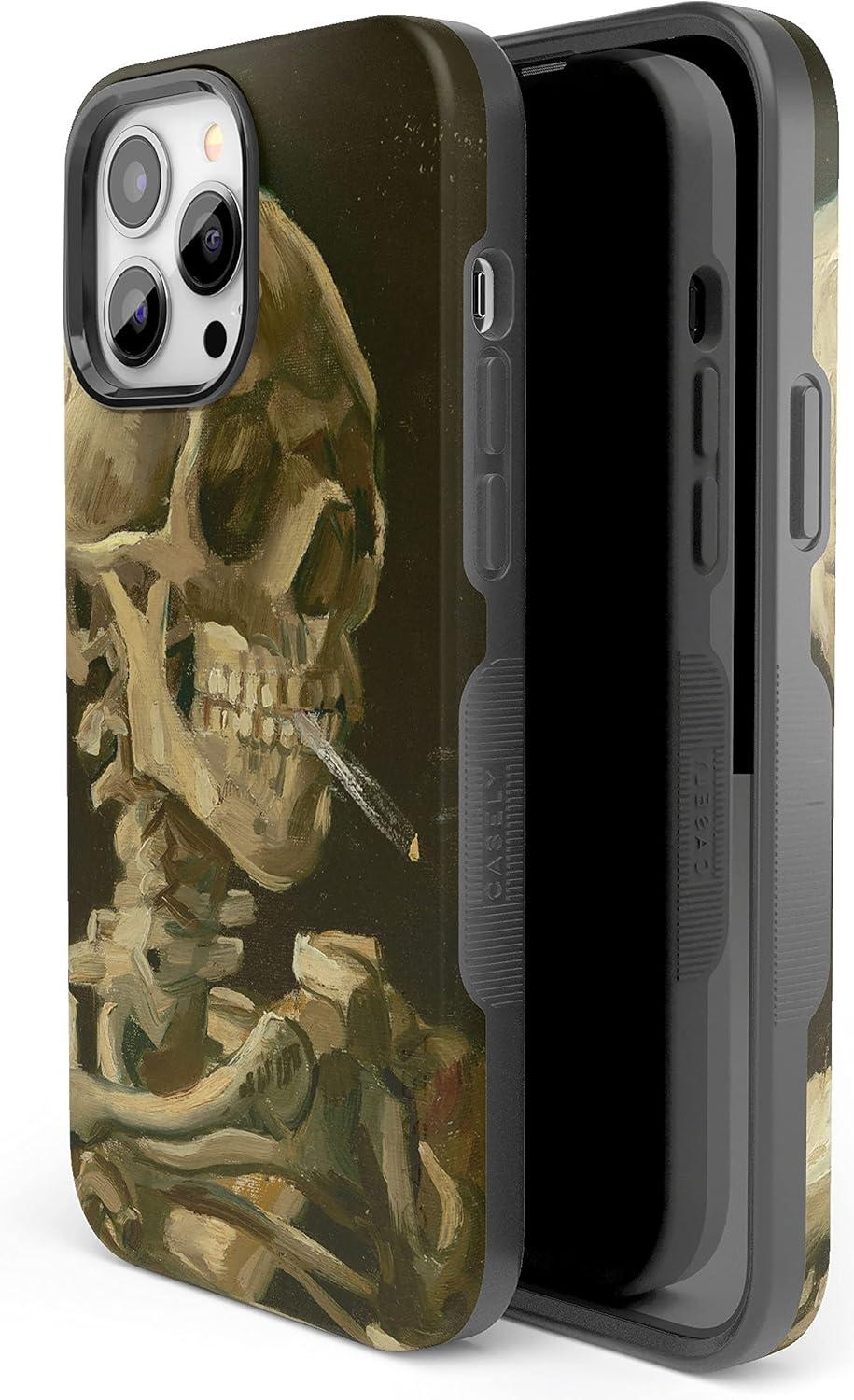 Casely iPhone 14 Pro Max Case | Blue Stripes | Sunday Best | Bold Protective Design | Compatible with MagSafe(Van Gogh | Skull of a Skeleton with Burning Cig)