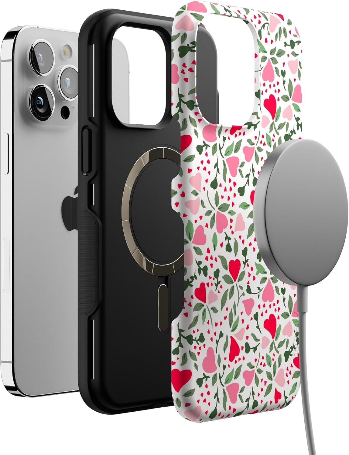 Casely iPhone 14 Pro Max Case | Blue Stripes | Sunday Best | Bold Protective Design | Compatible with MagSafe(Vines of Love | Floral Heart)