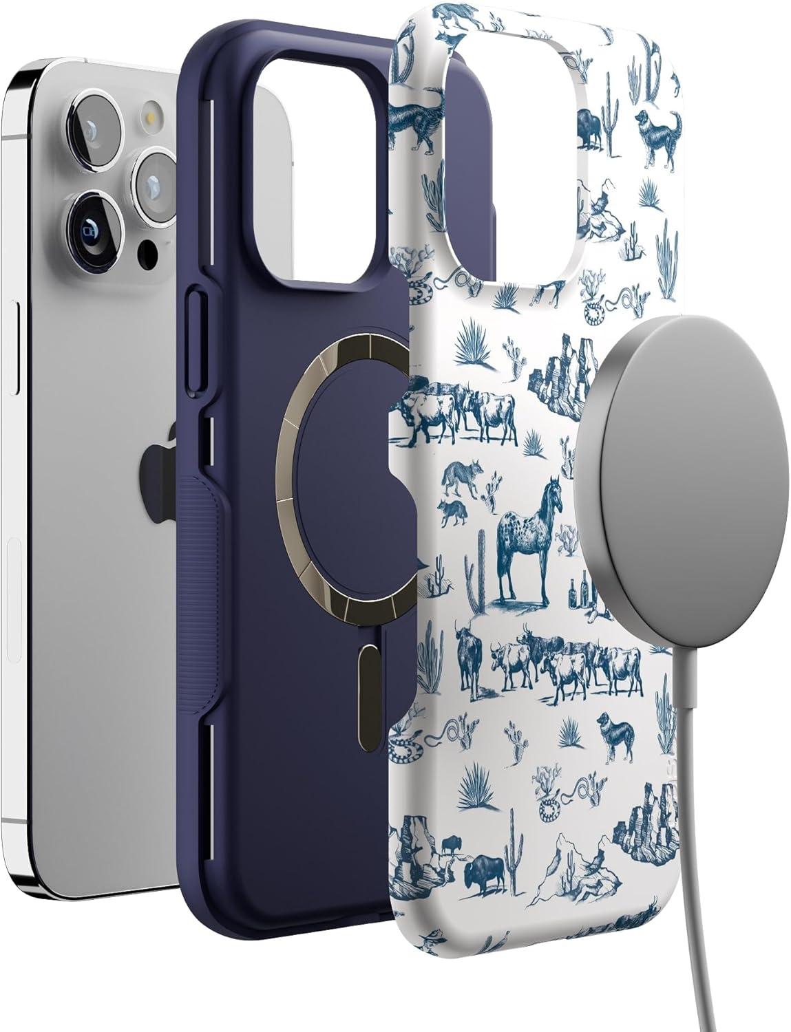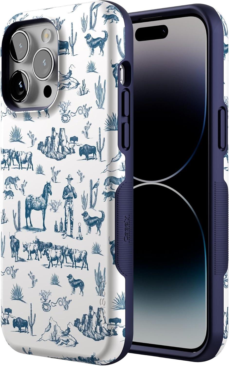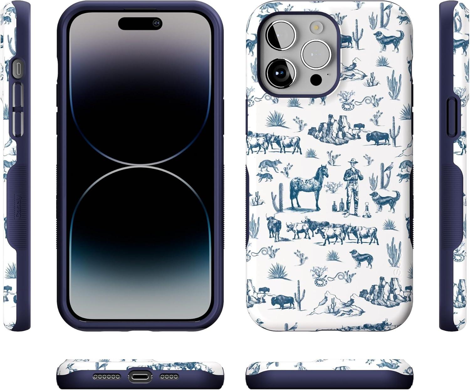 Casely iPhone 14 Pro Max Case | Blue Stripes | Sunday Best | Bold Protective Design | Compatible with MagSafe(Wild West Adventure | Desert)