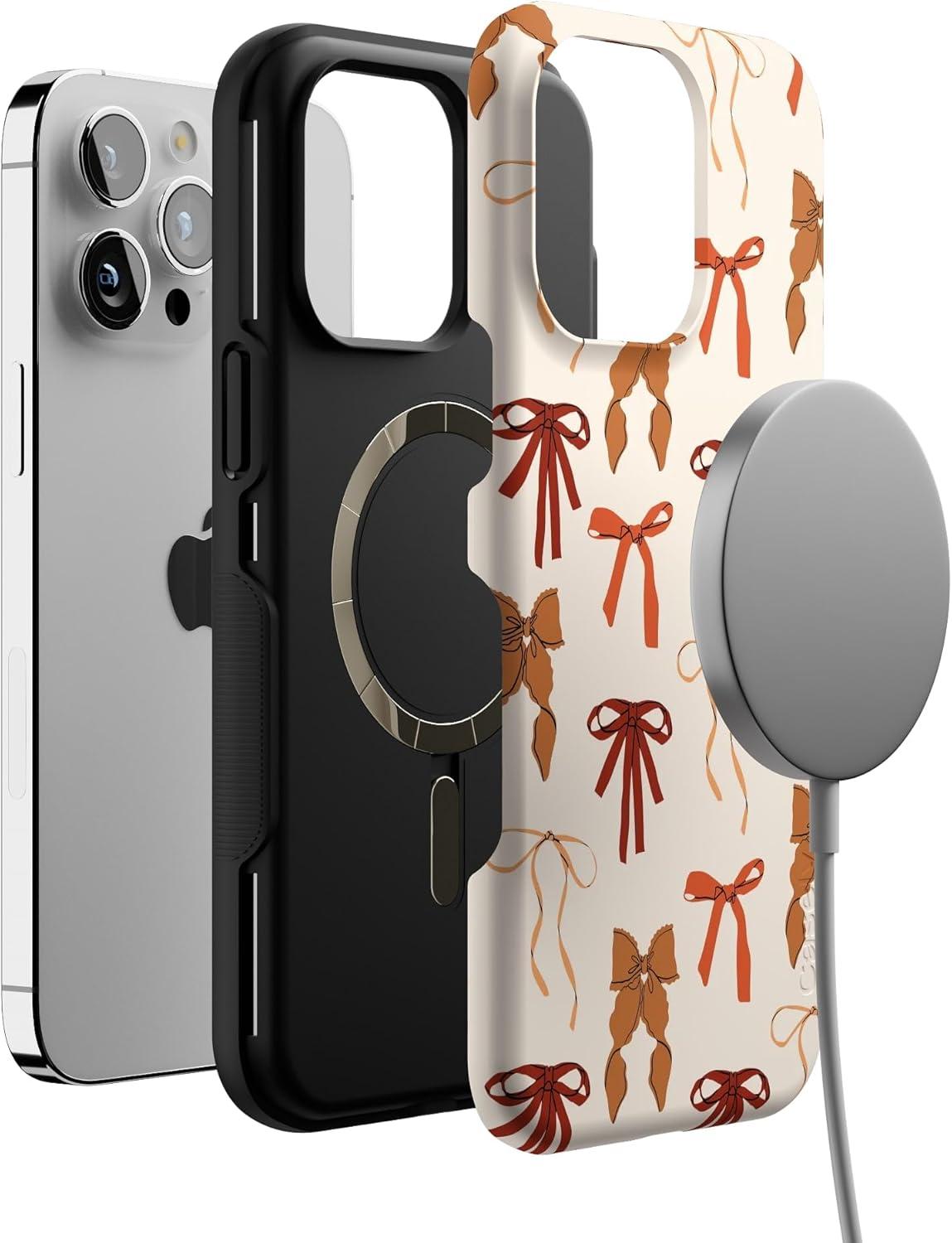 Casely iPhone 14 Pro Max Case | Fall Girlie | Pumpkin Spice Bows | Bold Protective Design | MagSafe Compatible Design