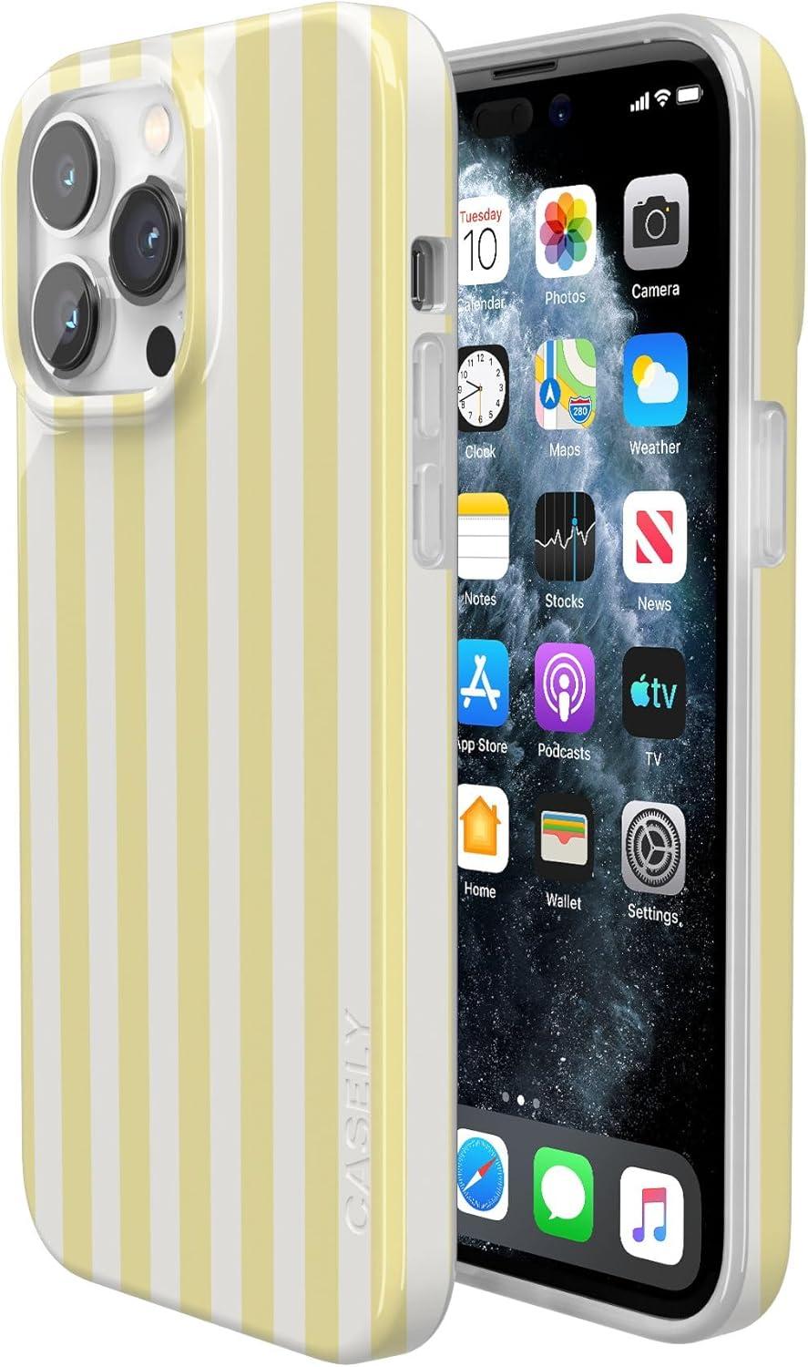 Casely iPhone 14 Pro Max Case | Lost in Spots | Cheetah Print | Compatible with MagSafe | Classic Ultra Thin Design(Butter Yellow Stripes | Sunday Best)