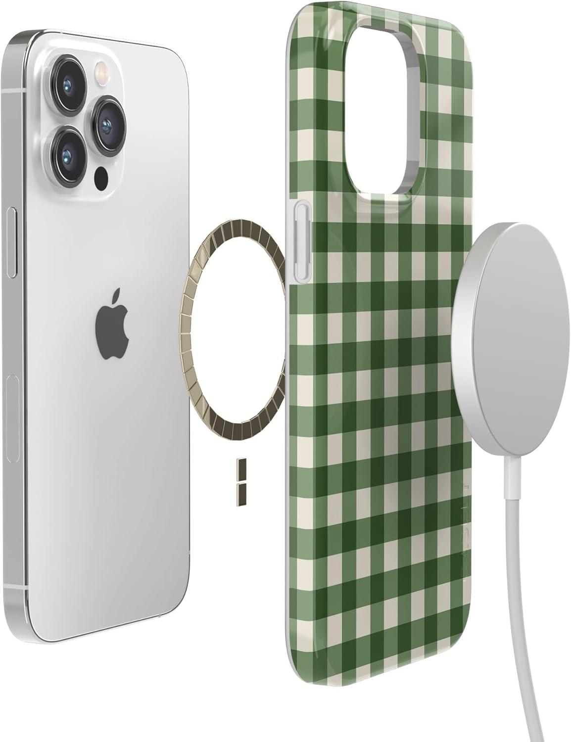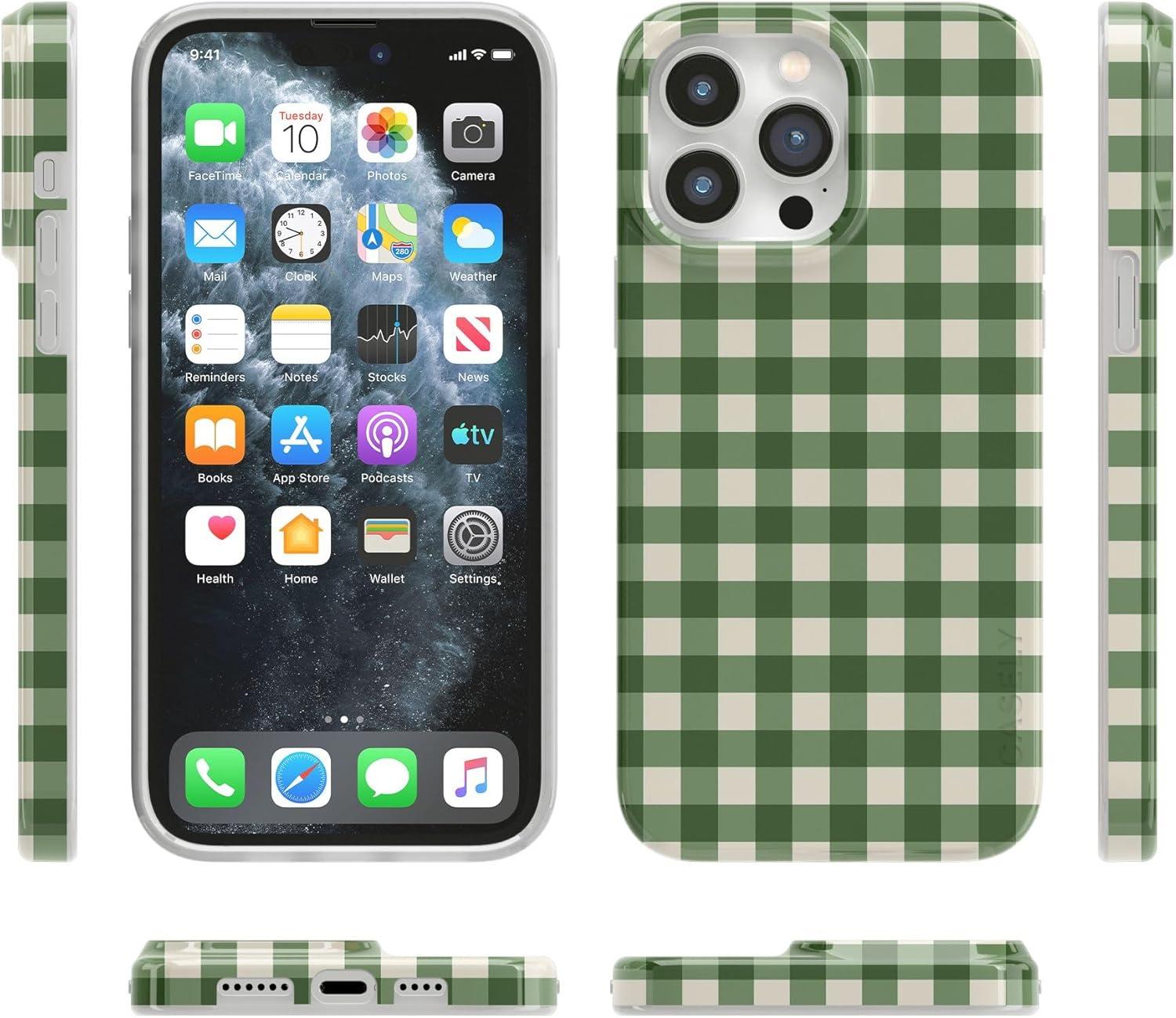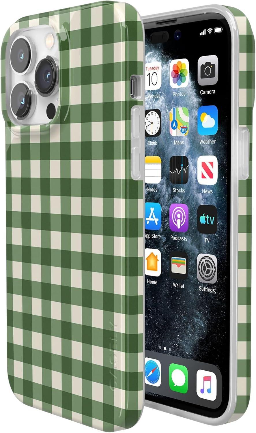 Casely iPhone 14 Pro Max Case | Lost in Spots | Cheetah Print | Compatible with MagSafe | Classic Ultra Thin Design(Checked Twice | Green Plaid)