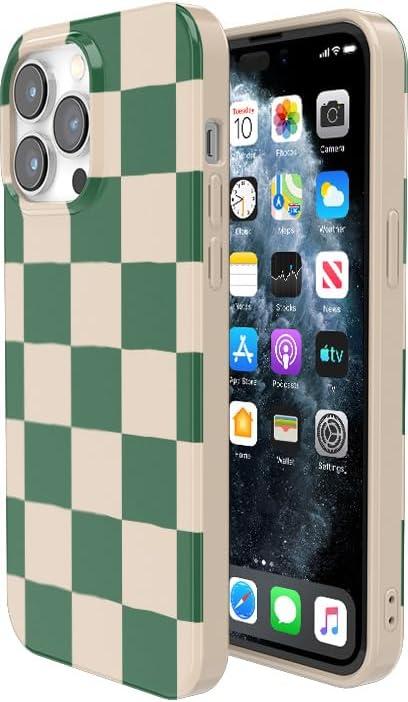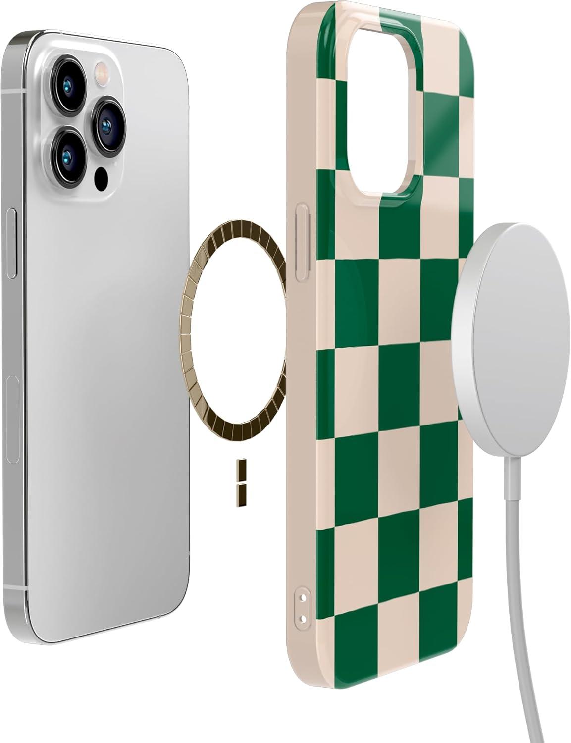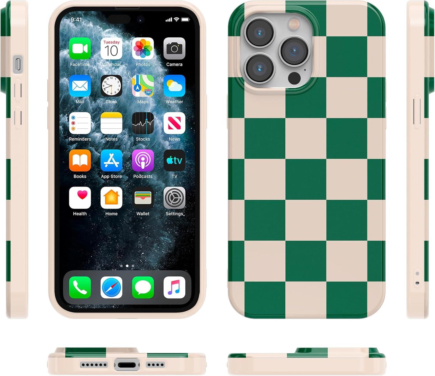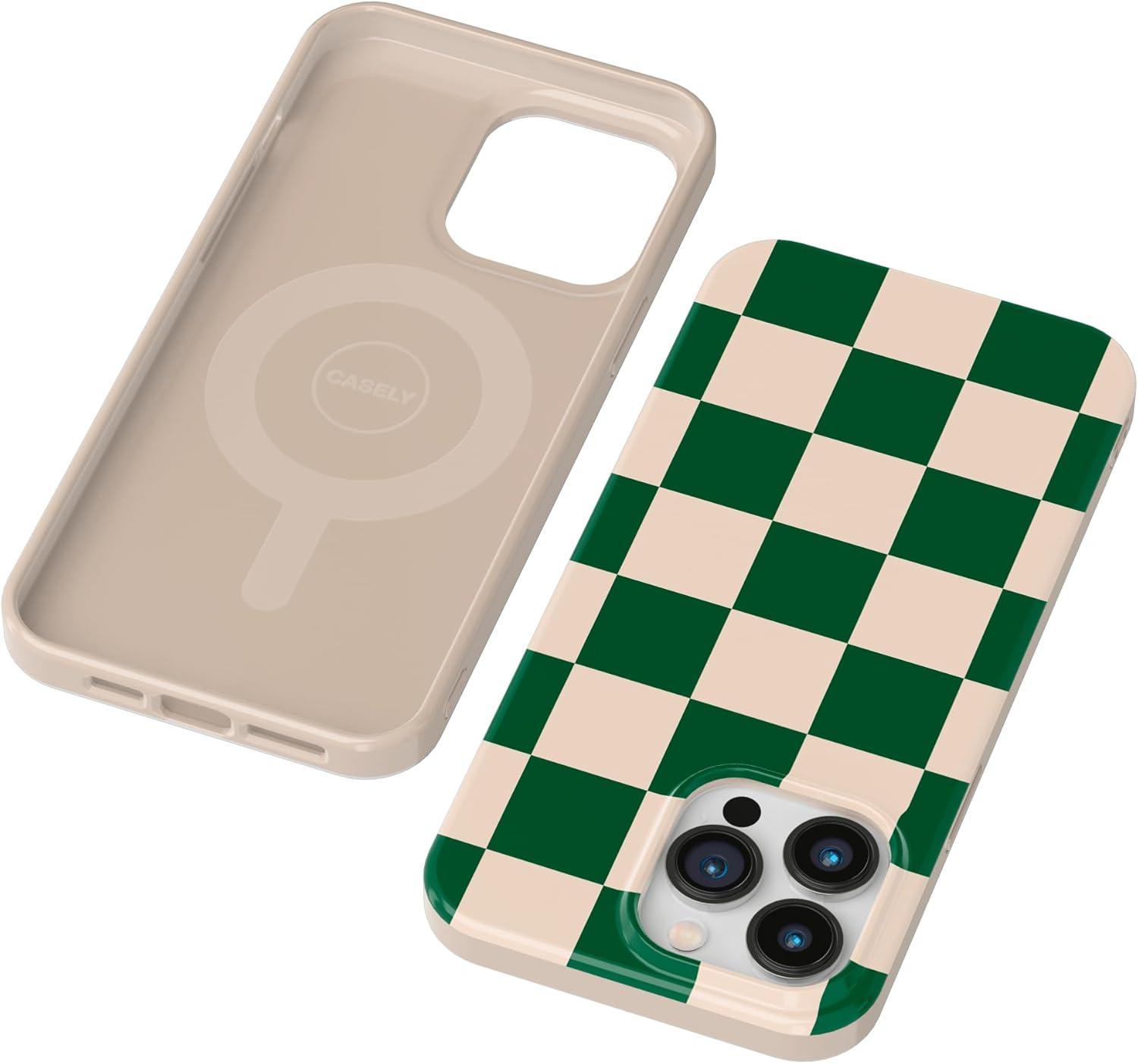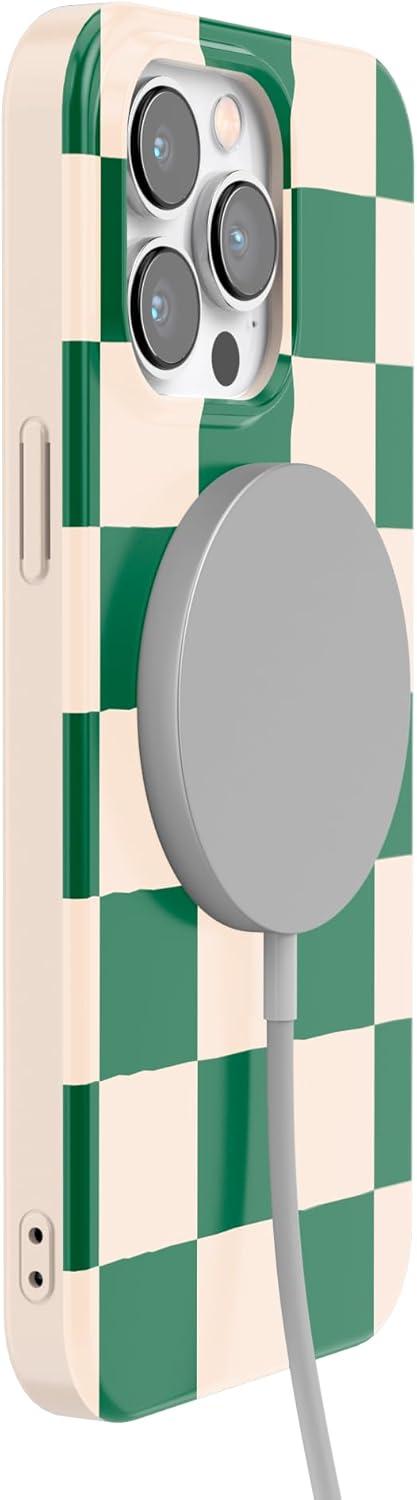 Casely iPhone 14 Pro Max Case | Lost in Spots | Cheetah Print | Compatible with MagSafe | Classic Ultra Thin Design(Fit Check | Green Checkerboard)