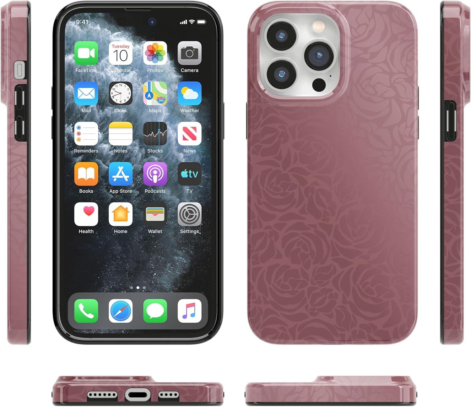 Casely iPhone 14 Pro Max Case | Lost in Spots | Cheetah Print | Compatible with MagSafe | Classic Ultra Thin Design(Moody Monochrome | Bordeaux Rose)
