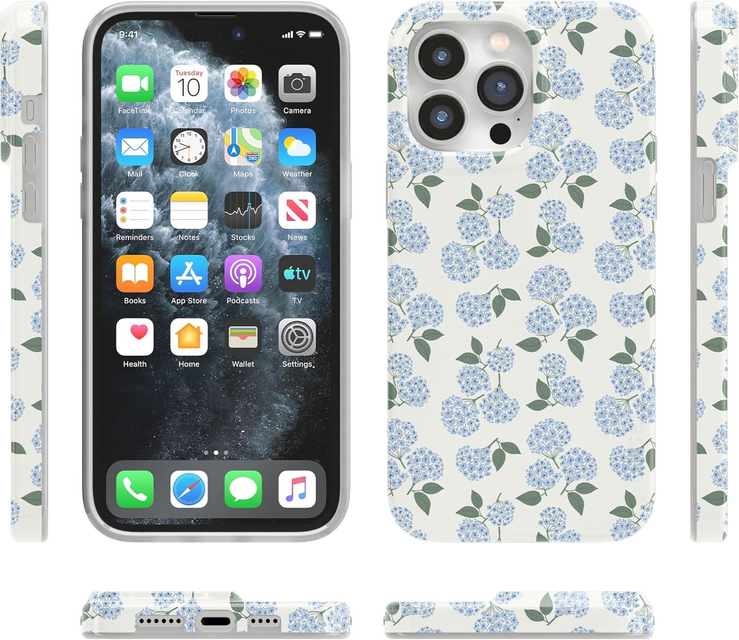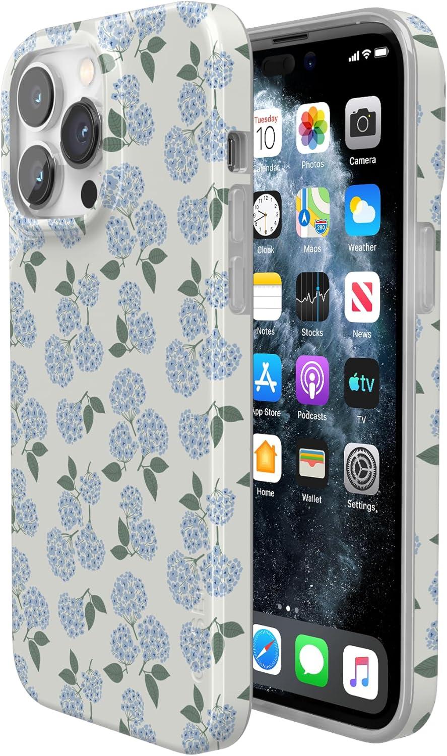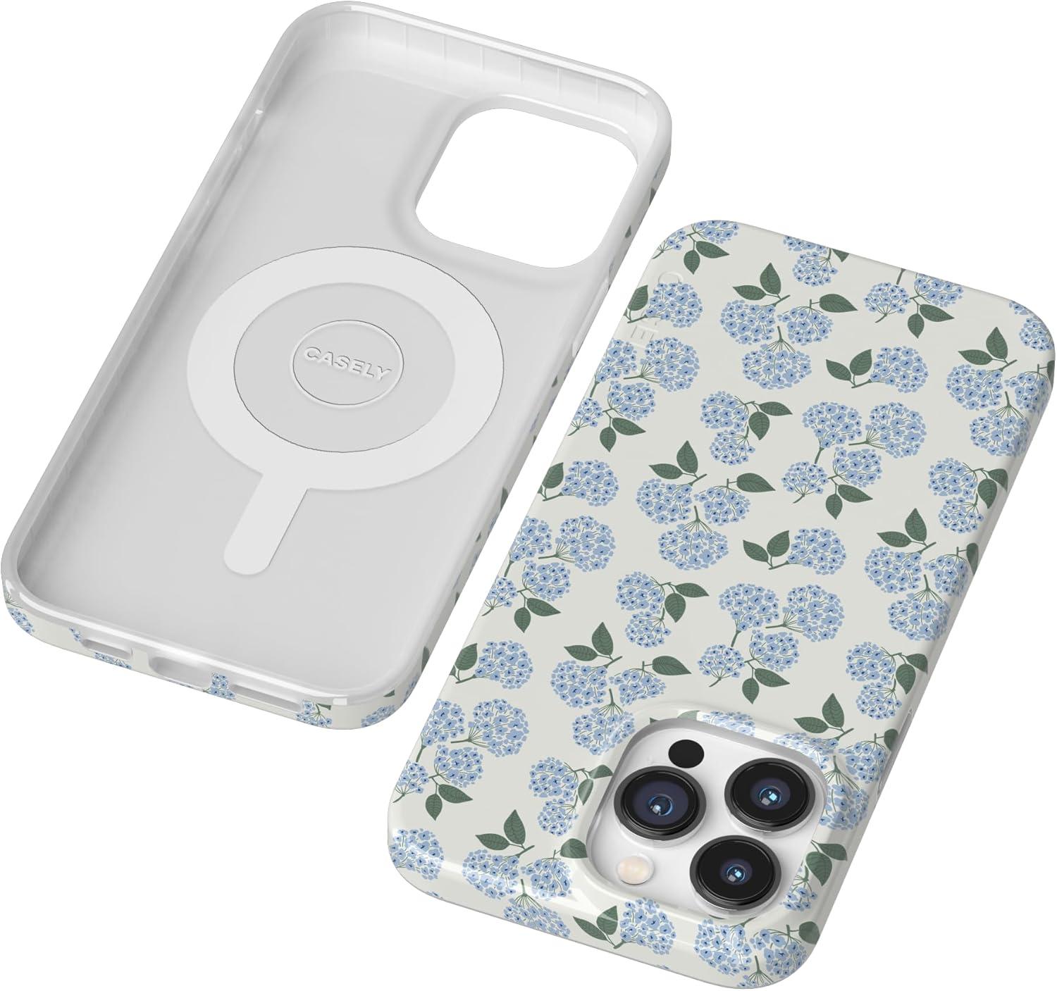 Casely iPhone 14 Pro Max Case | Lost in Spots | Cheetah Print | Compatible with MagSafe | Classic Ultra Thin Design(Nantucket Cottage | Blue Hydrangea)