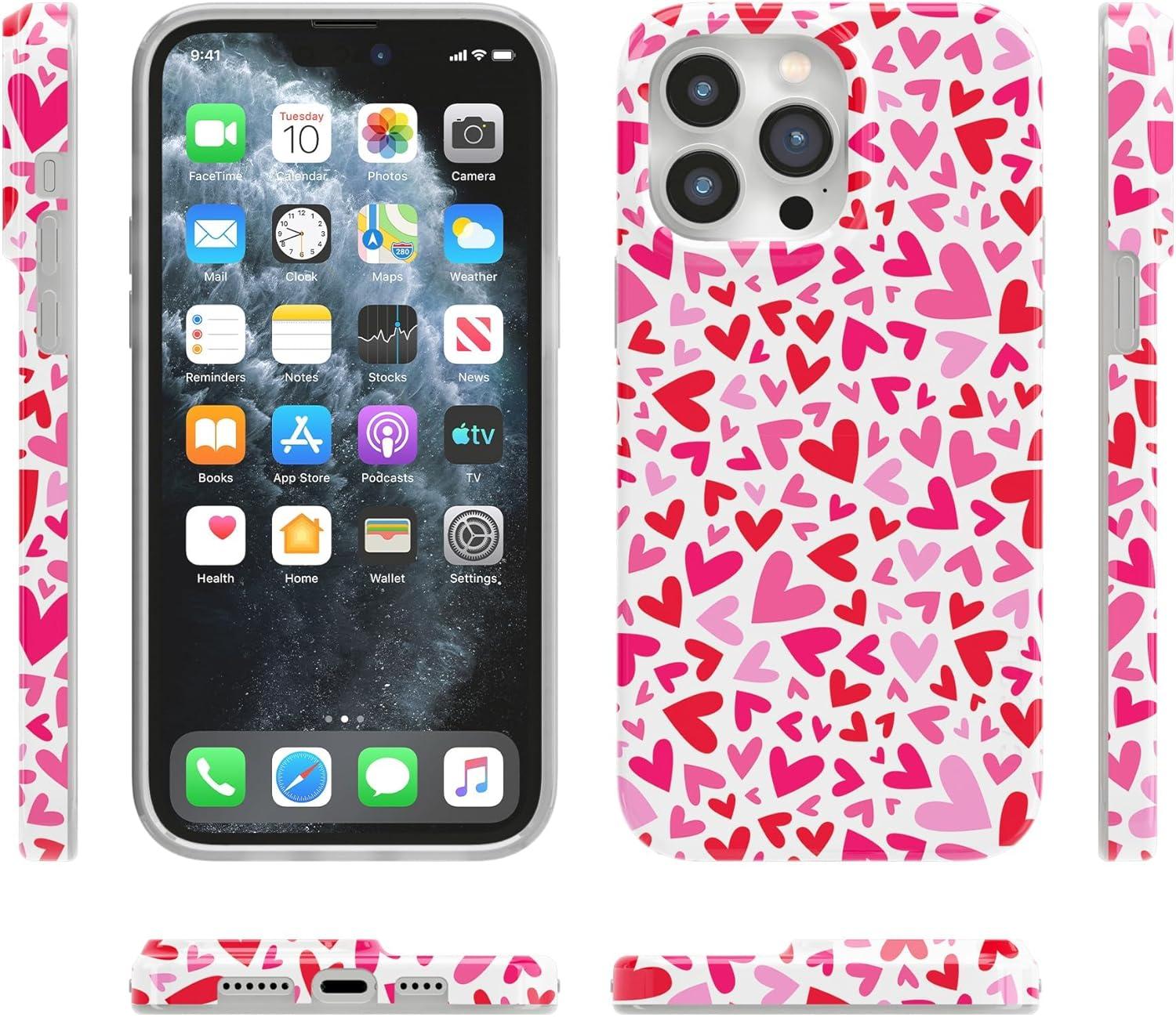 Casely iPhone 14 Pro Max Case | Lost in Spots | Cheetah Print | Compatible with MagSafe | Classic Ultra Thin Design(XOXO | Candy Hearts)