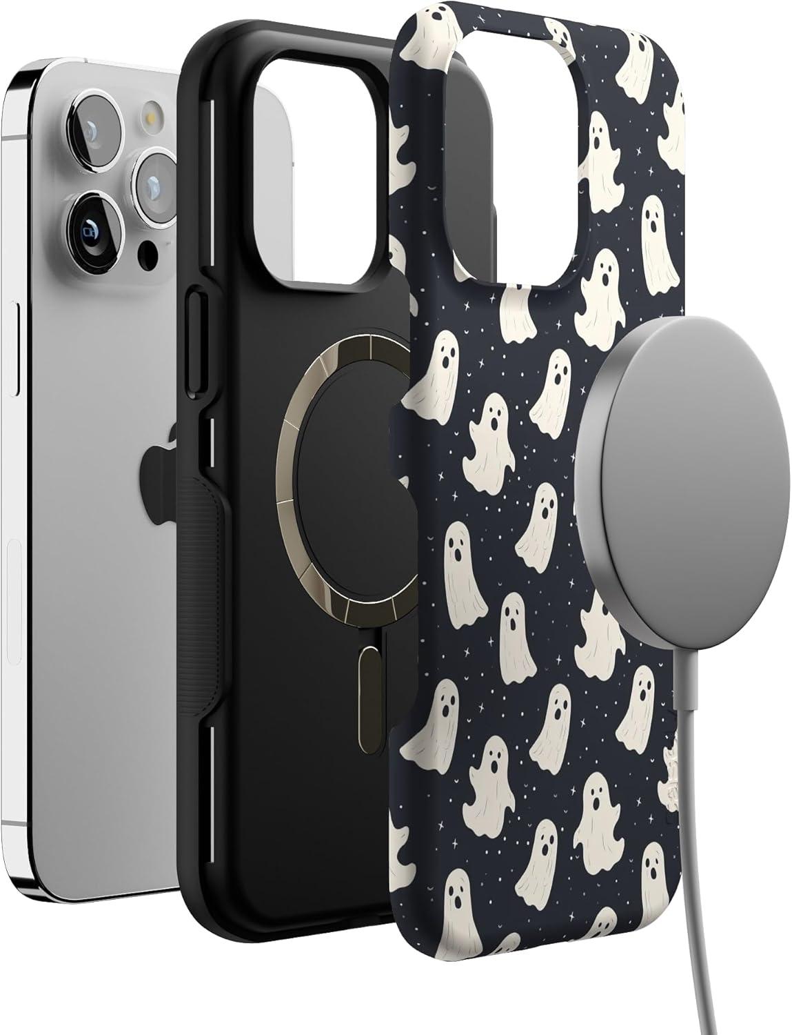 Casely iPhone 14 Pro Max Case | Nantucket Cottage | Blue Hydrangea | Compatible with MagSafe | Bold Protective Design(All Boos No Bite | Friendly Ghost)