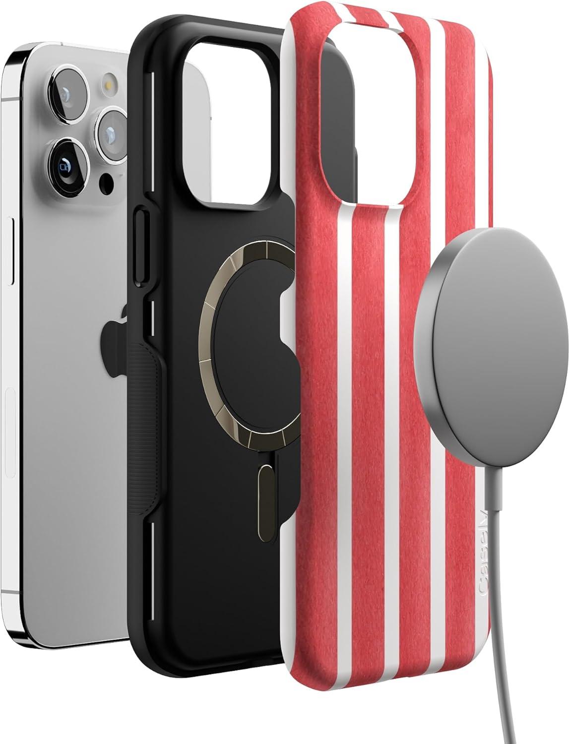 Casely iPhone 14 Pro Max Case | Nantucket Cottage | Blue Hydrangea | Compatible with MagSafe | Bold Protective Design(East Coast Summer | Red Stripes)