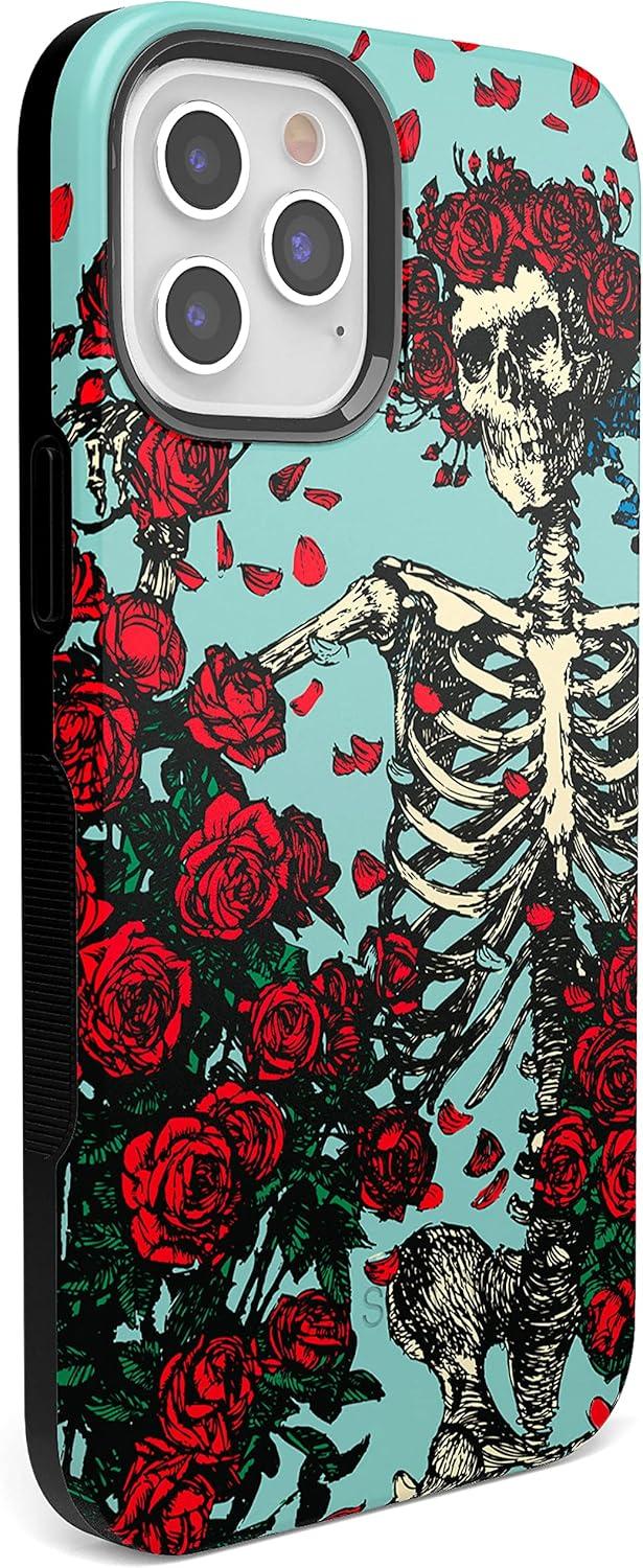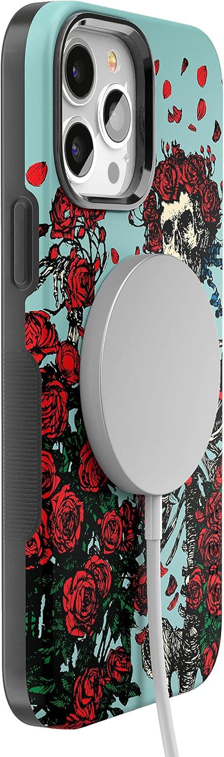 Casely iPhone 14 Pro Max Case | Nantucket Cottage | Blue Hydrangea | Compatible with MagSafe | Bold Protective Design(Forever Grateful | Grateful Dead Skeleton Floral)
