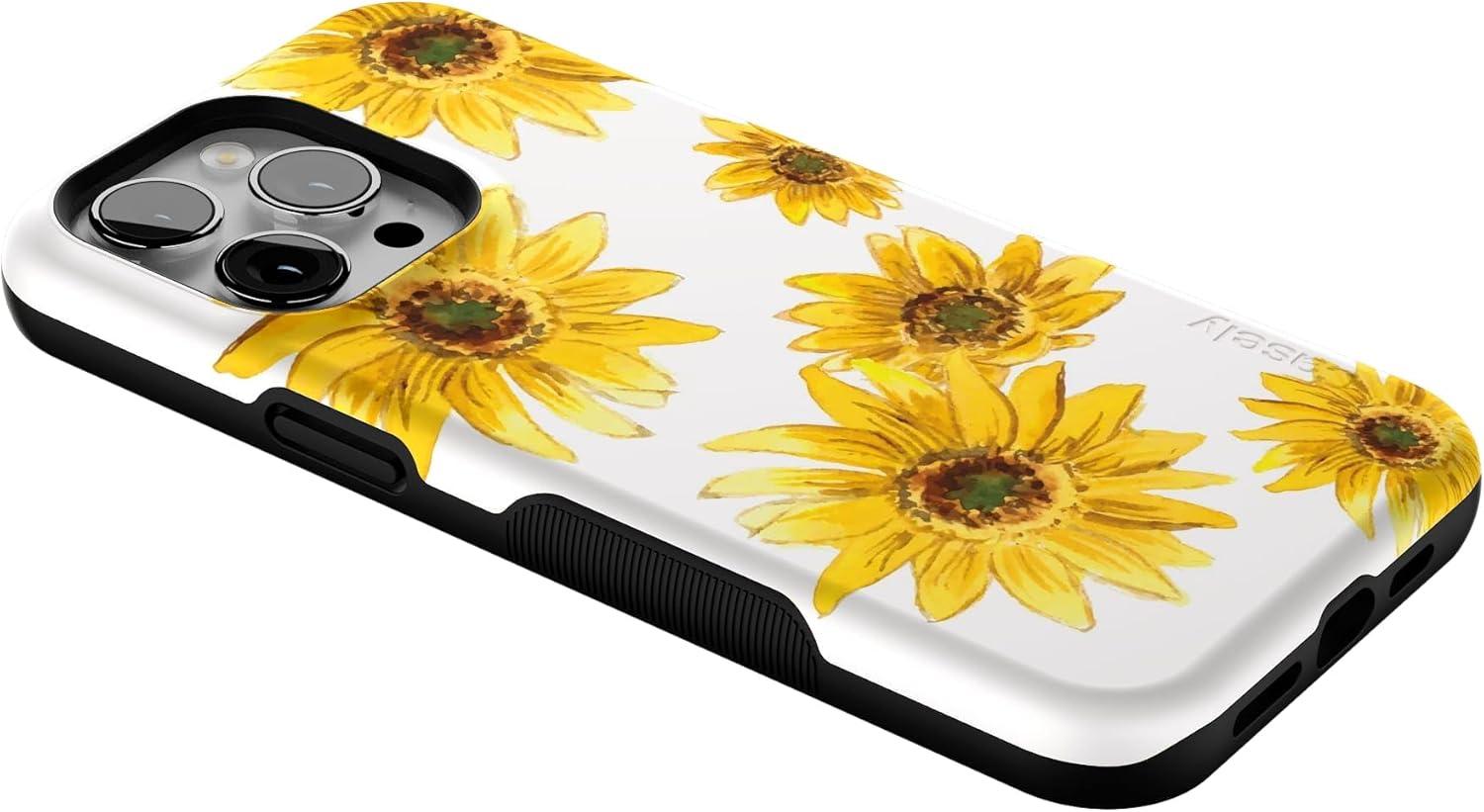 Casely iPhone 14 Pro Max Case | Nantucket Cottage | Blue Hydrangea | Compatible with MagSafe | Bold Protective Design(Golden Garden | Yellow Sunflower)