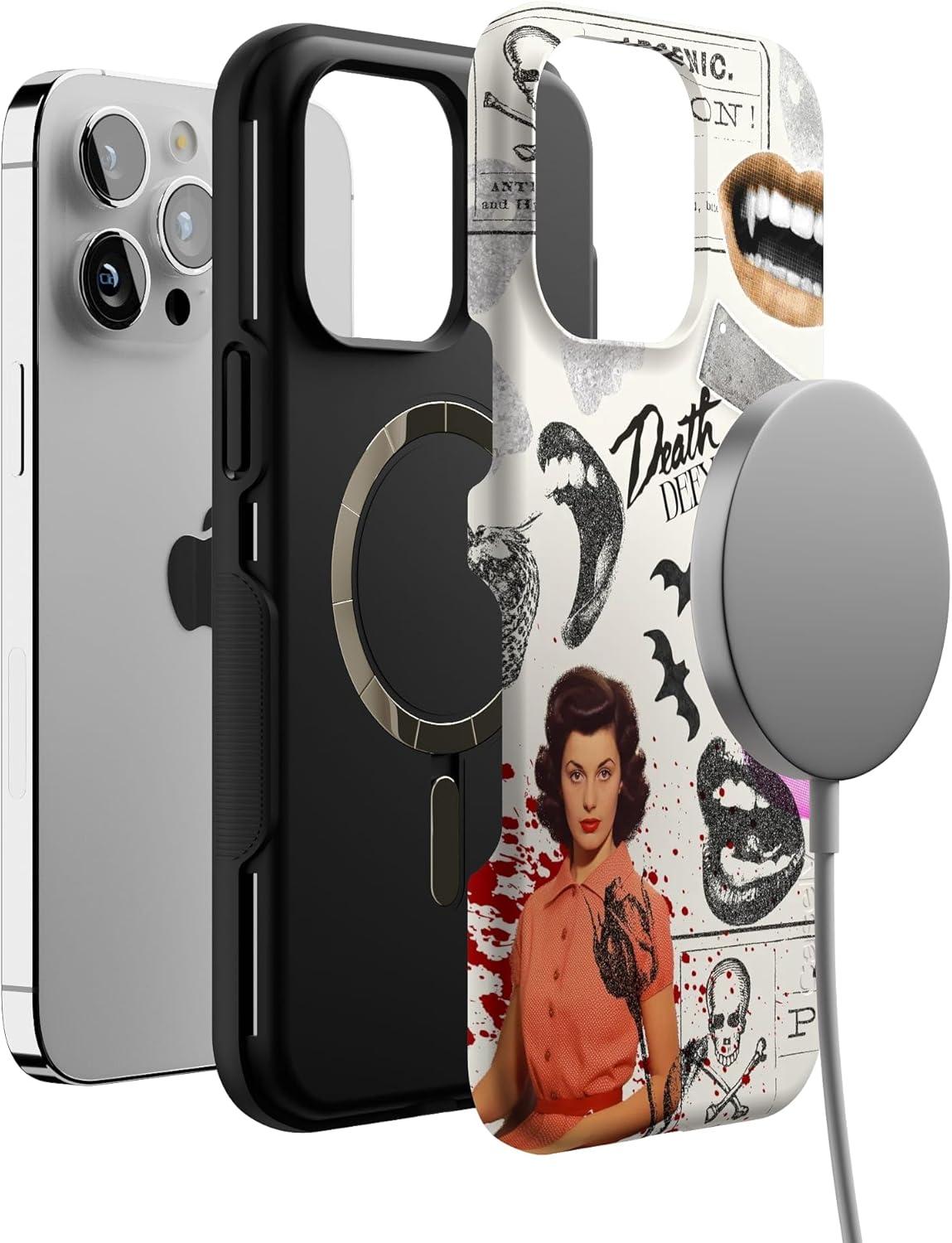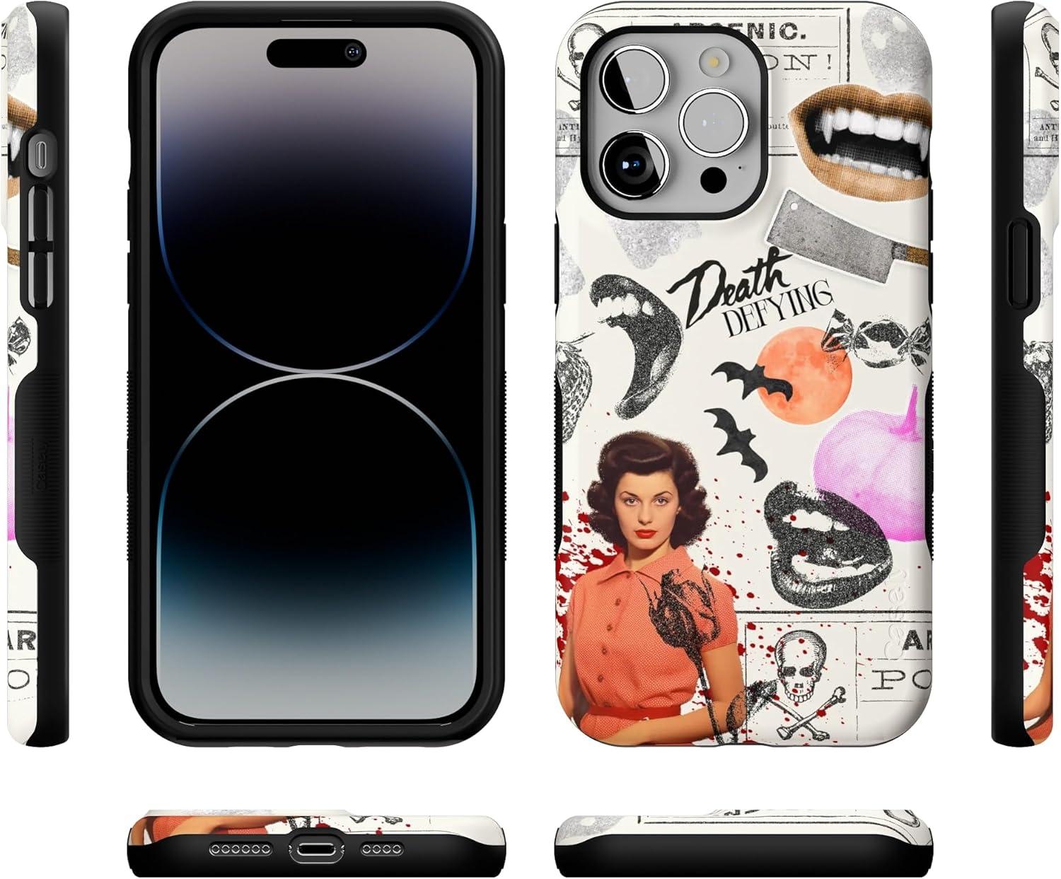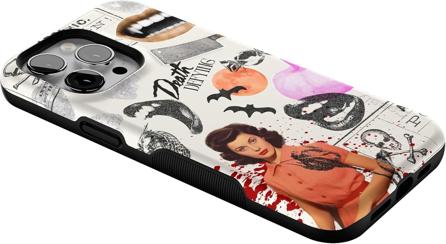 Casely iPhone 14 Pro Max Case | Nantucket Cottage | Blue Hydrangea | Compatible with MagSafe | Bold Protective Design(If You Dare | Horror Collage)