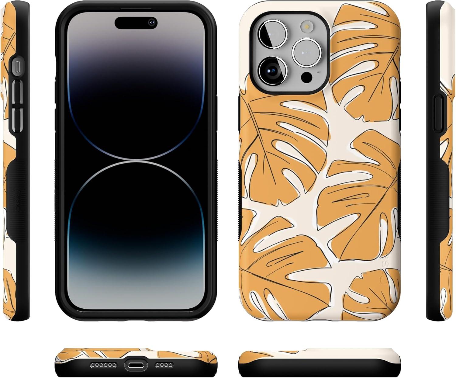 Casely iPhone 14 Pro Max Case | Nantucket Cottage | Blue Hydrangea | Compatible with MagSafe | Bold Protective Design(Island Time | Tropical Leaves Floral)