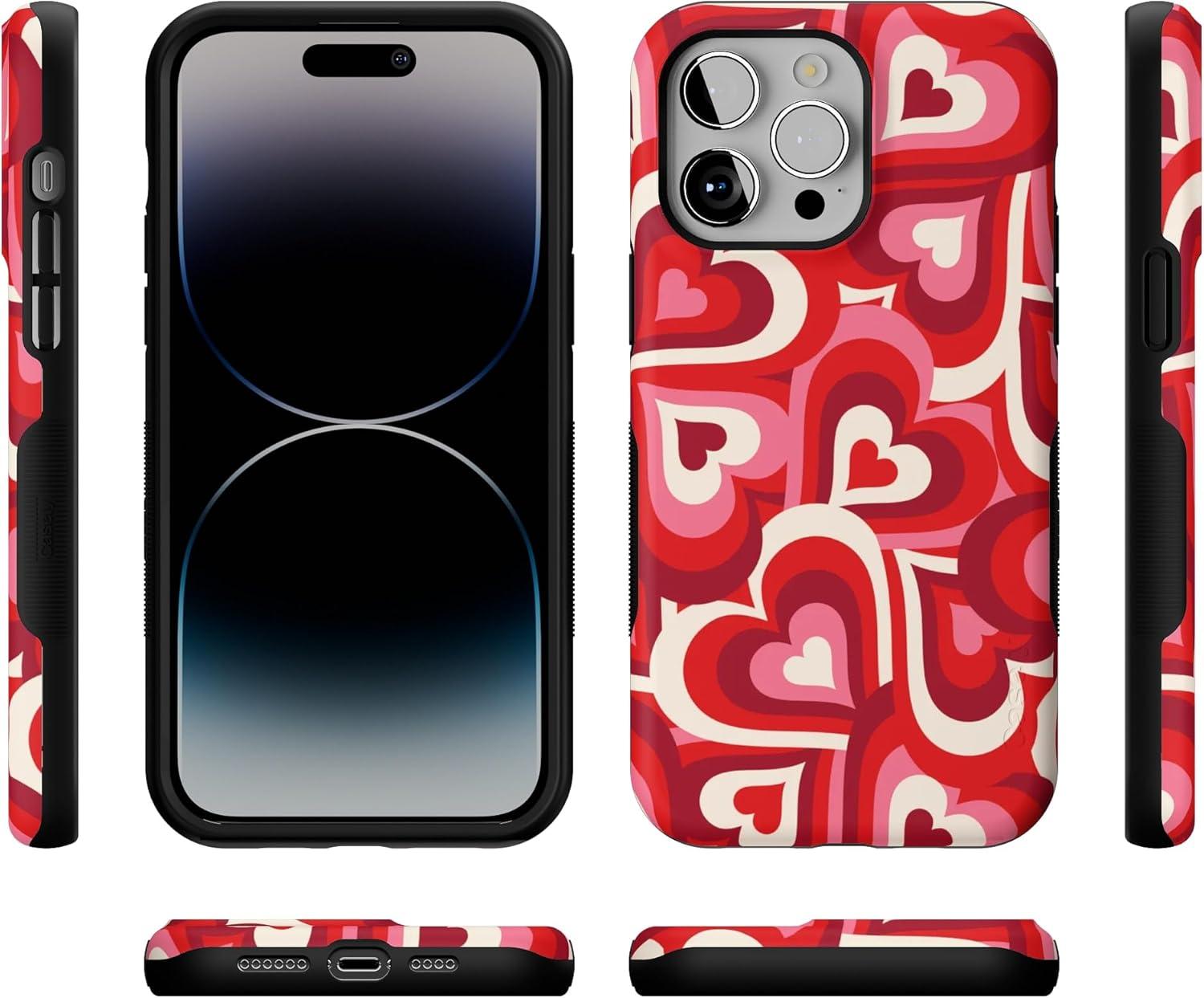 Casely iPhone 14 Pro Max Case | Nantucket Cottage | Blue Hydrangea | Compatible with MagSafe | Bold Protective Design(Love Song Remix | Ombre Hearts)
