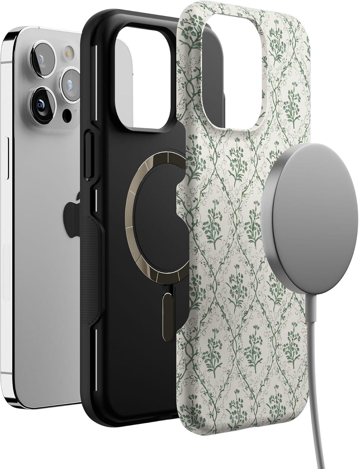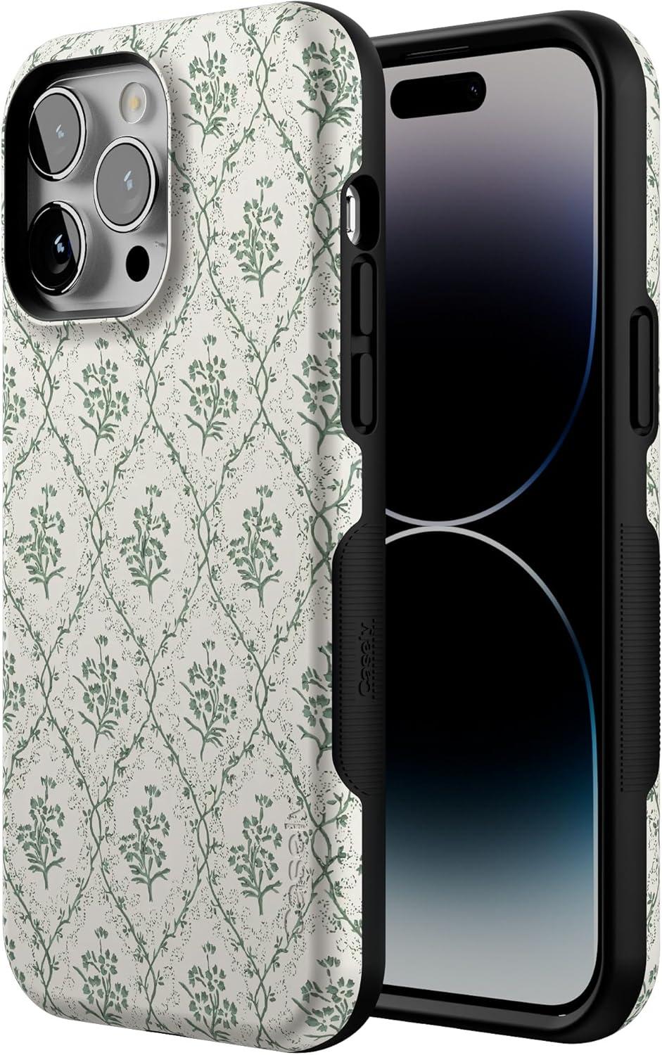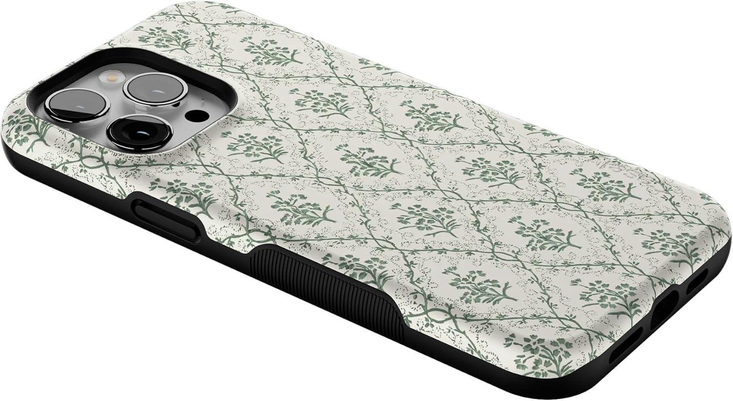 Casely iPhone 14 Pro Max Case | Nantucket Cottage | Blue Hydrangea | Compatible with MagSafe | Bold Protective Design(Sage Tapestry | Floral Vines)