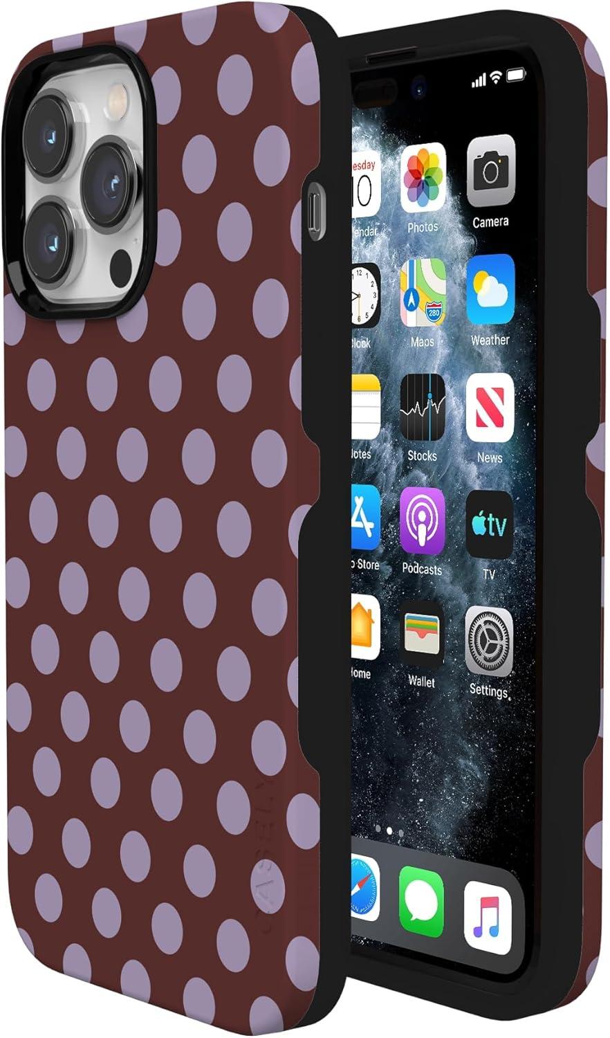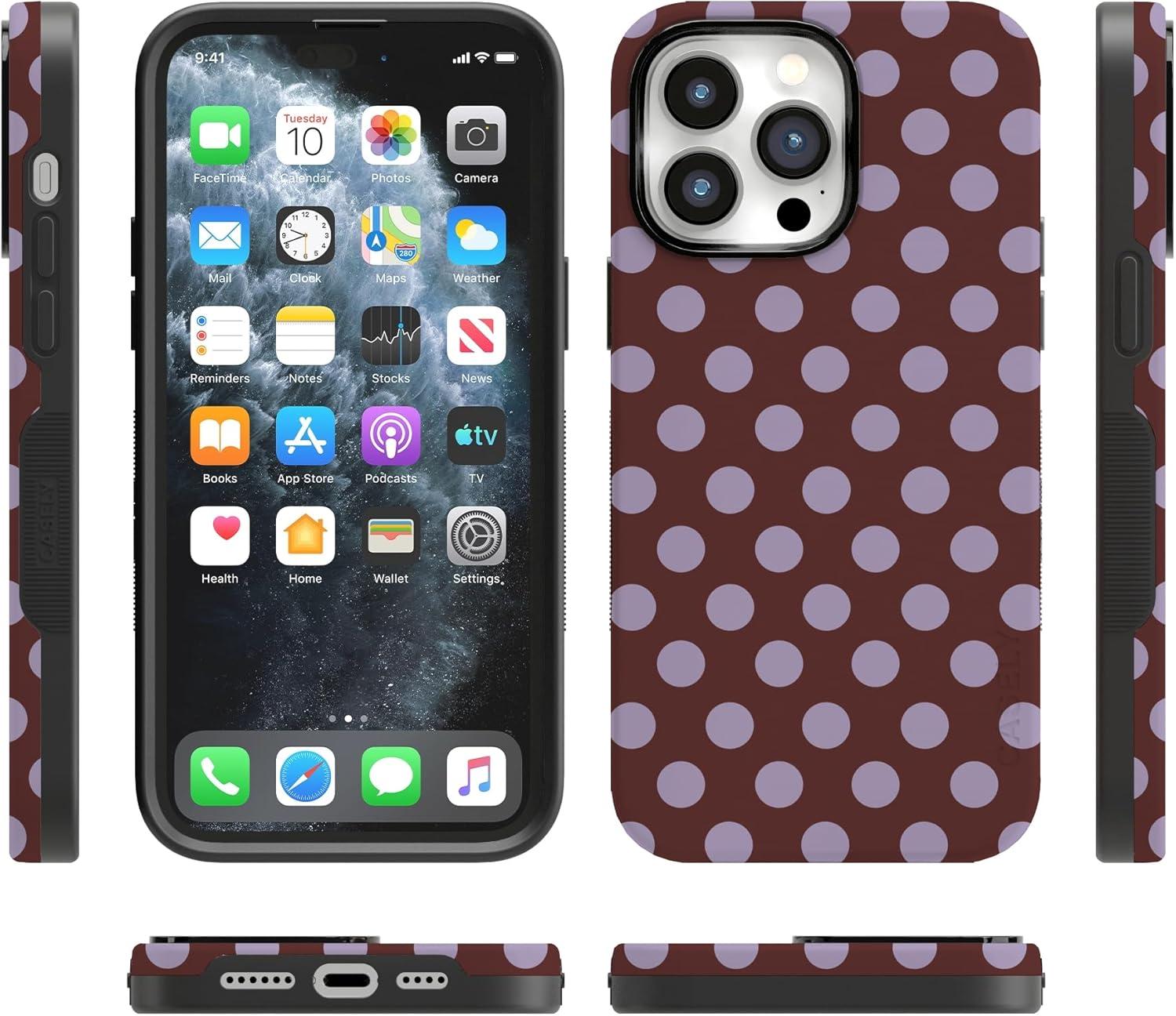 Casely iPhone 14 Pro Max Case | Nantucket Cottage | Blue Hydrangea | Compatible with MagSafe | Bold Protective Design(Spotted in SoHo | Burgundy Polka Dot)