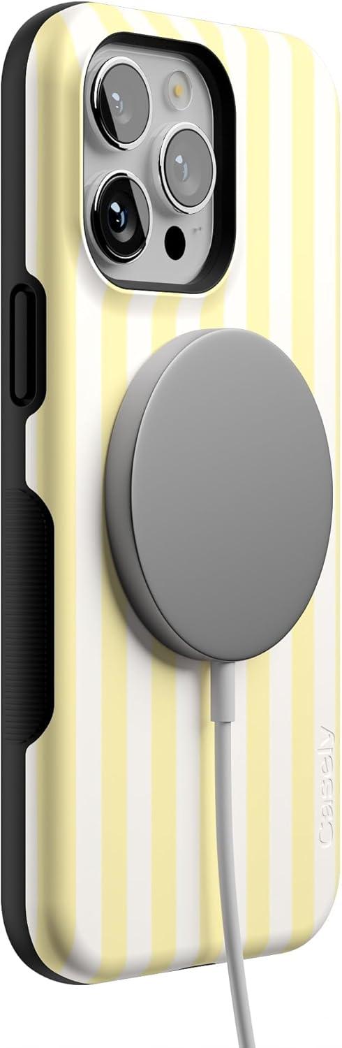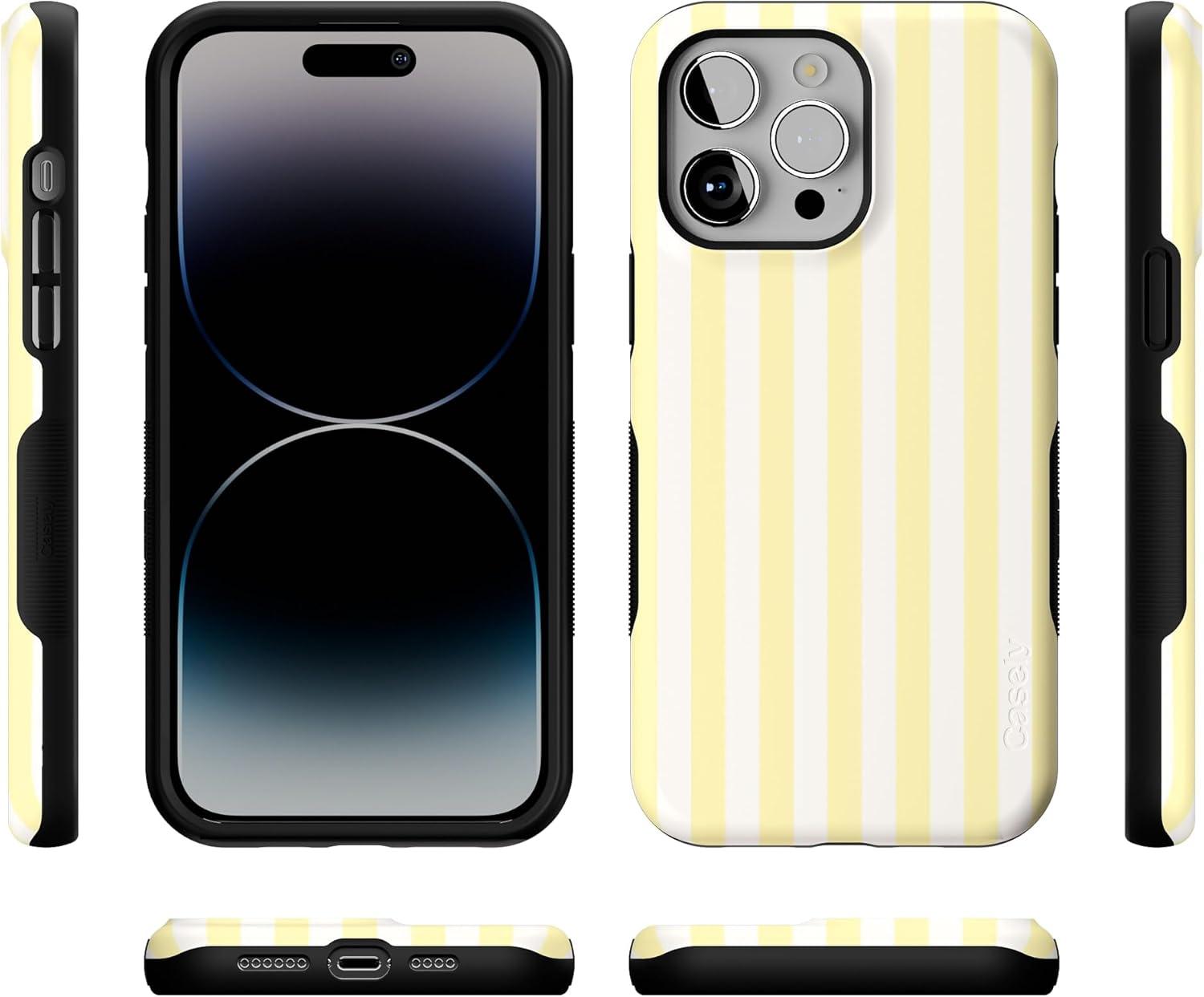 Casely iPhone 14 Pro Max Case | Nantucket Cottage | Blue Hydrangea | Compatible with MagSafe | Bold Protective Design(Yellow Stripes | Sunday Best)