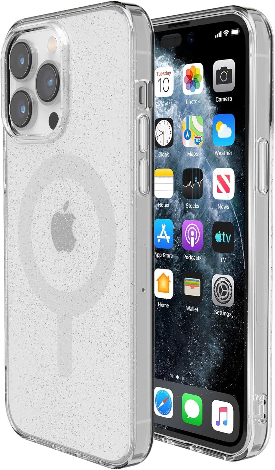 Casely iPhone 14 Pro Max Case | Not a Phase | Clear Flash Tattoo | Compatible with MagSafe | Classic Ultra Slim Design(Glitter | Clear Skies | Clear Shimmer)
