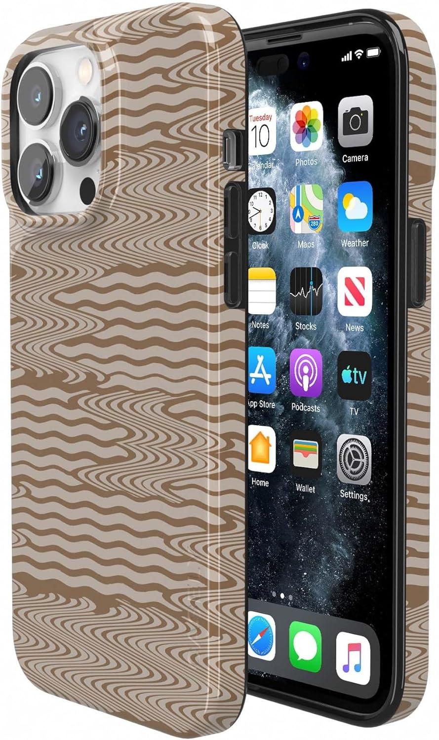 Casely iPhone 14 Pro Max Case | Not a Phase | Clear Flash Tattoo | Compatible with MagSafe | Classic Ultra Slim Design(Mocha Ripple | Brown Waves Case)