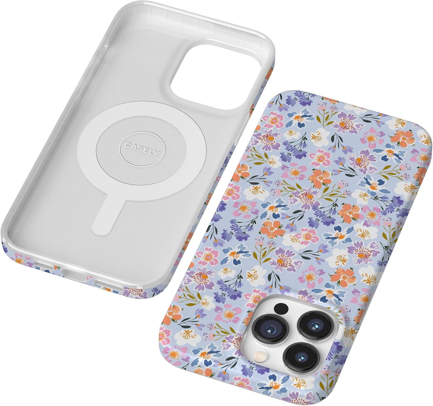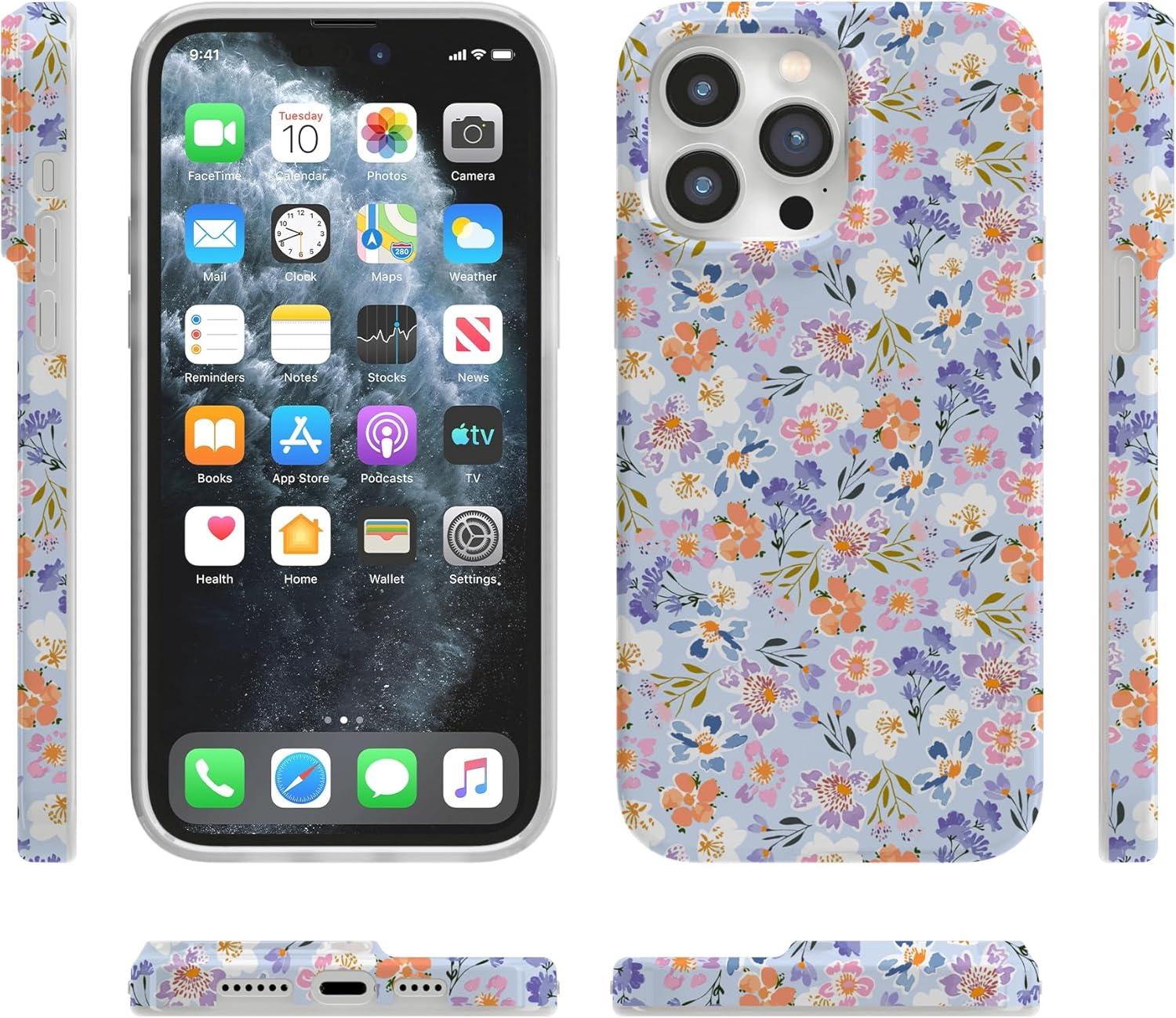 Casely iPhone 14 Pro Max Case | Not a Phase | Clear Flash Tattoo | Compatible with MagSafe | Classic Ultra Slim Design(Poppy Meadows | Pastel Floral)