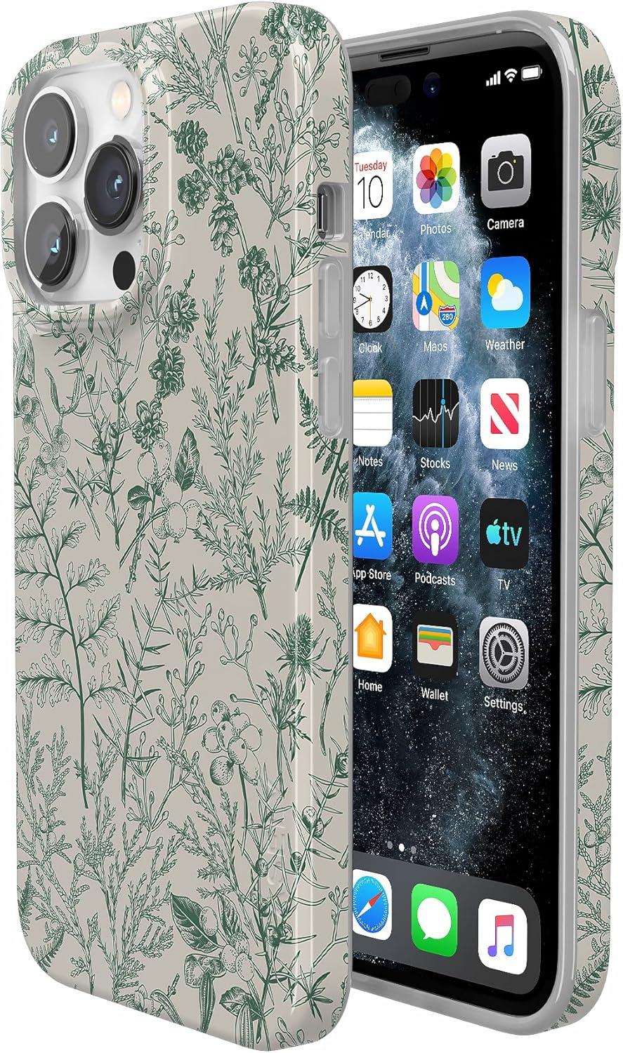 Casely iPhone 14 Pro Max Case | Not a Phase | Clear Flash Tattoo | Compatible with MagSafe | Classic Ultra Slim Design(Sage Garden | Green Floral Case)