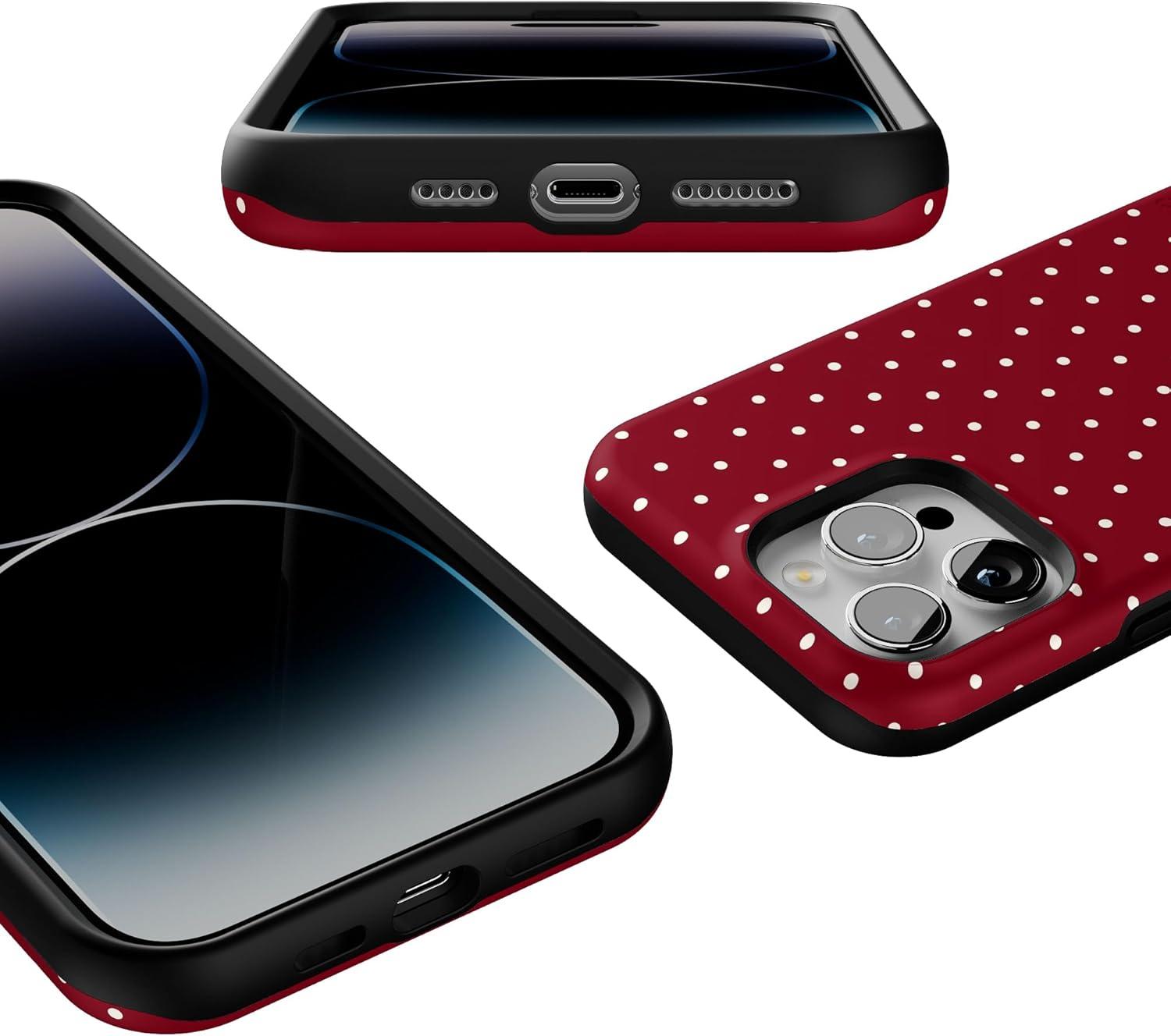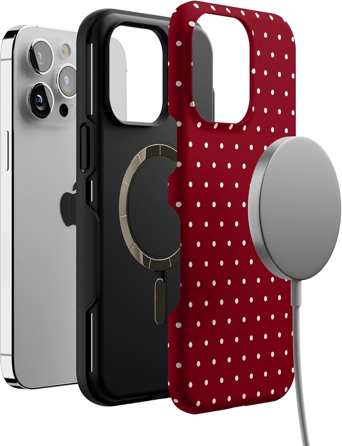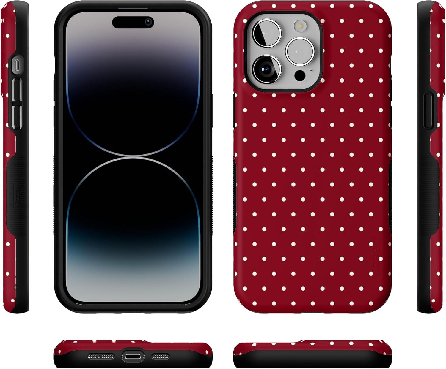 Casely iPhone 14 Pro Max Case | On The Dot | Maroon Polka Dot | Bold Protective Design | MagSafe Compatible Design