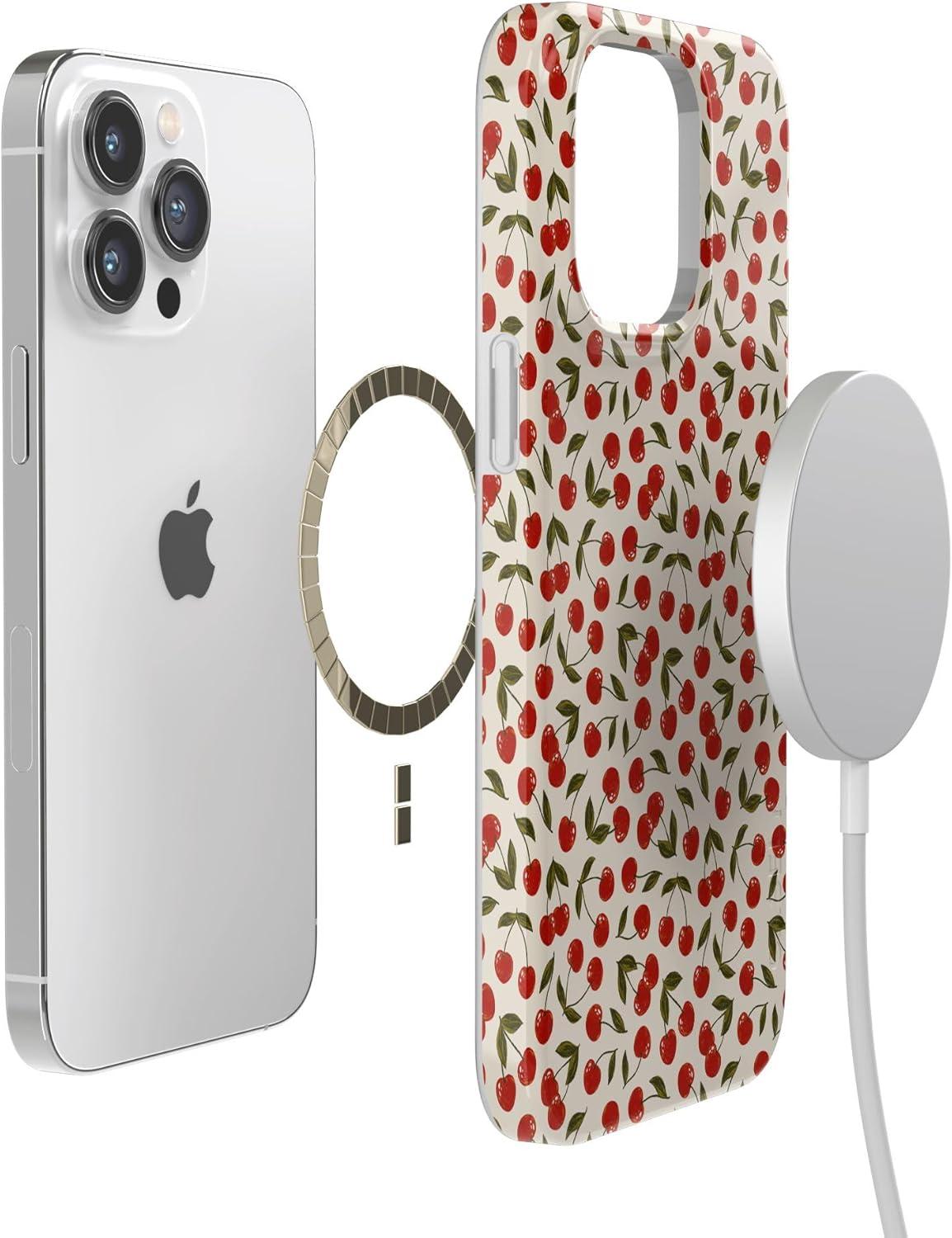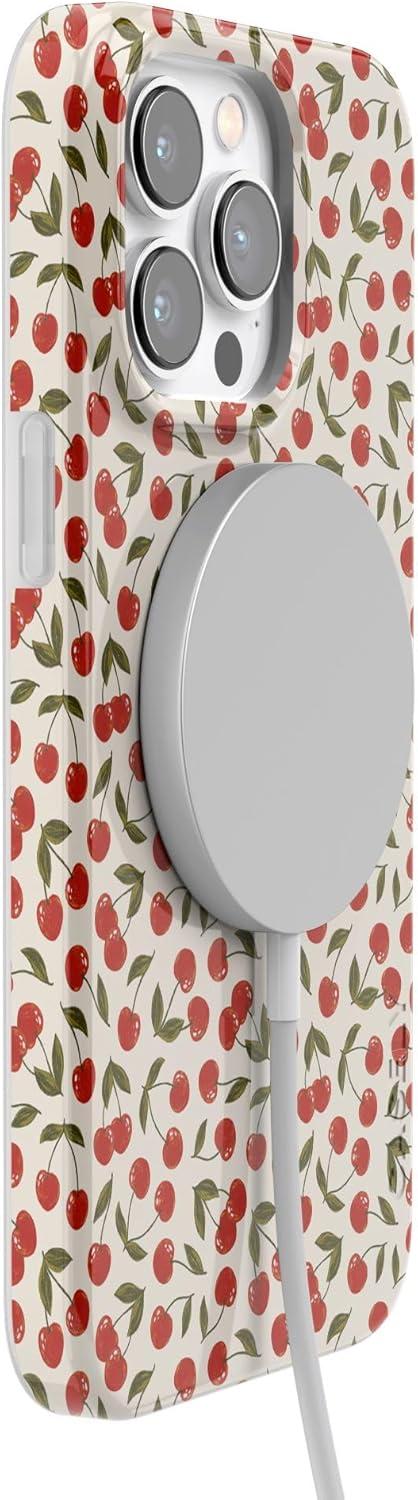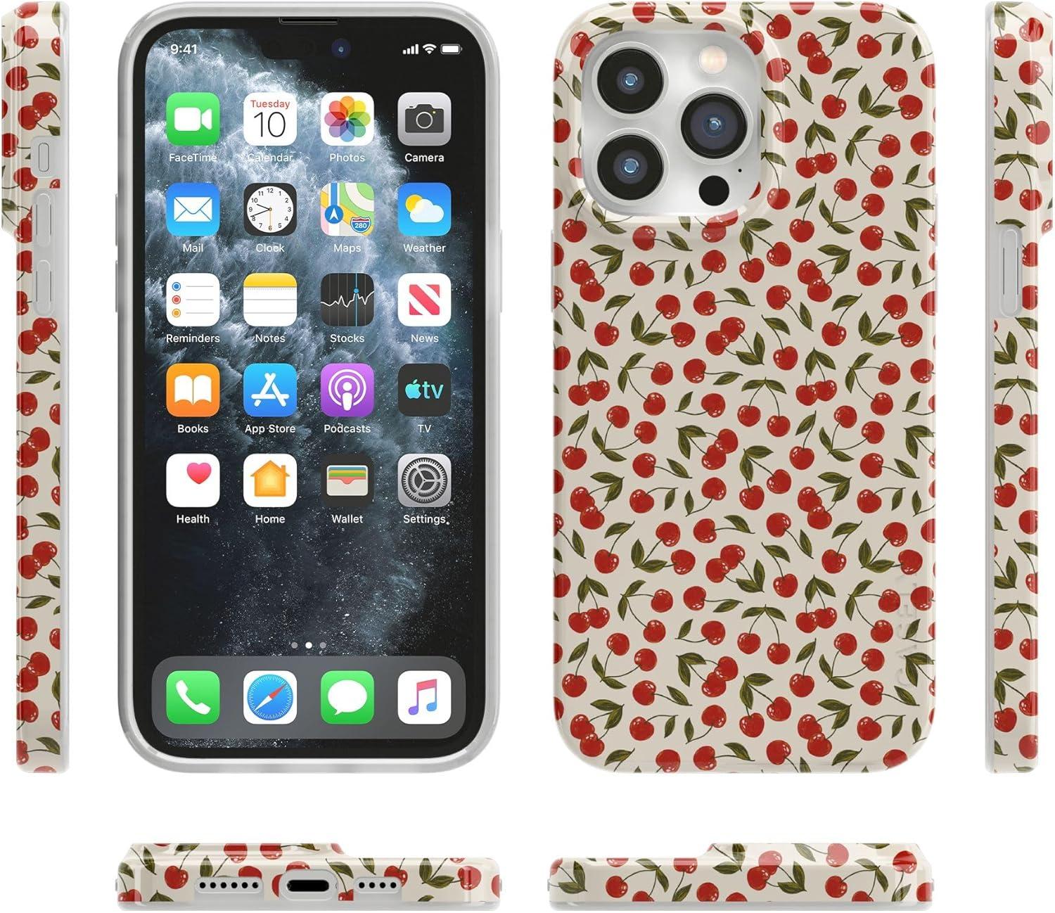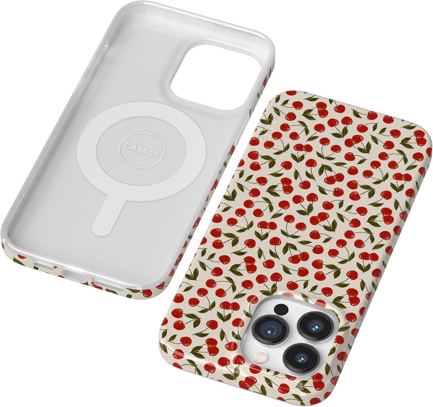 Casely iPhone 14 Pro Max Case | Rose to Fame | Blue & White Floral | Compatible with MagSafe | Classic Ultra Thin Design(Cherry on Top | Red Cherries)