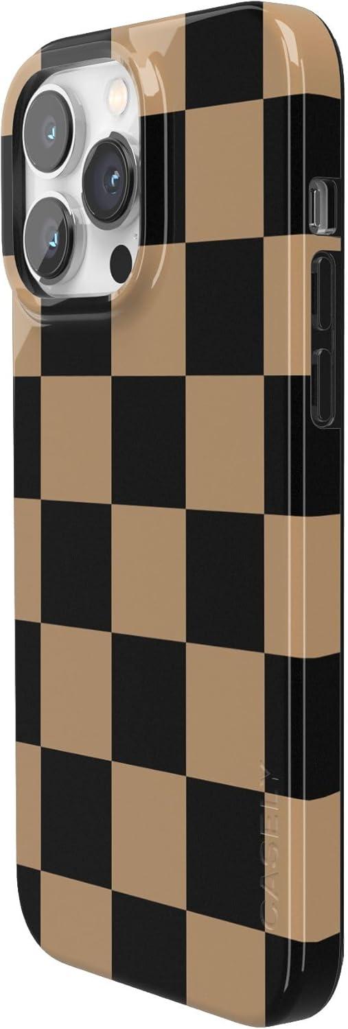Casely iPhone 14 Pro Max Case | Rose to Fame | Blue & White Floral | Compatible with MagSafe | Classic Ultra Thin Design(Fit Check | Black & Brown Checkerboard)
