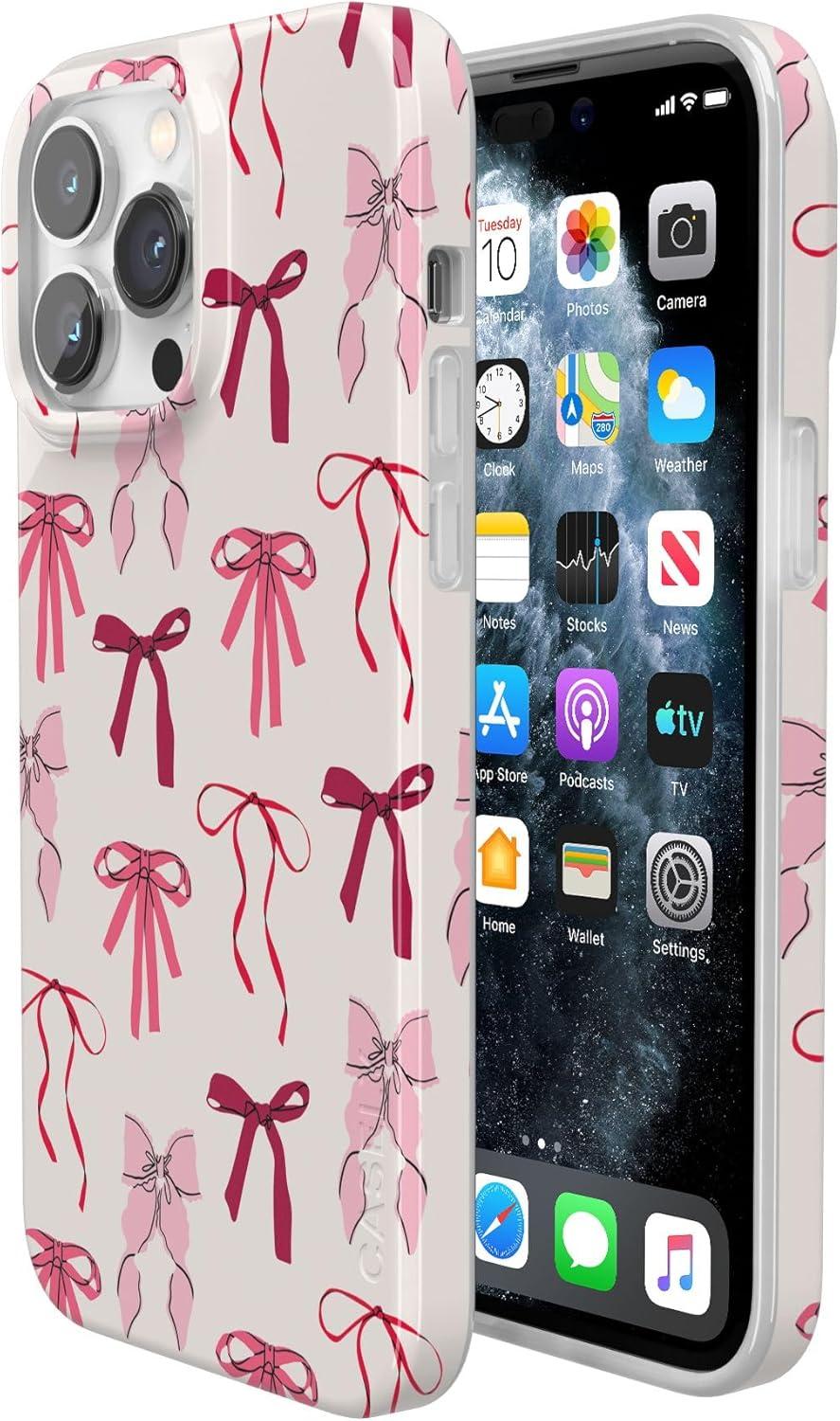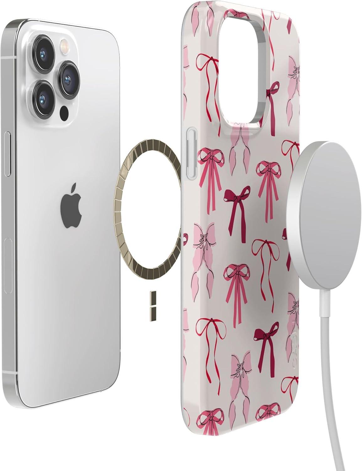Casely iPhone 14 Pro Max Case | Rose to Fame | Blue & White Floral | Compatible with MagSafe | Classic Ultra Thin Design(Lover Girlie | Pink Bows)