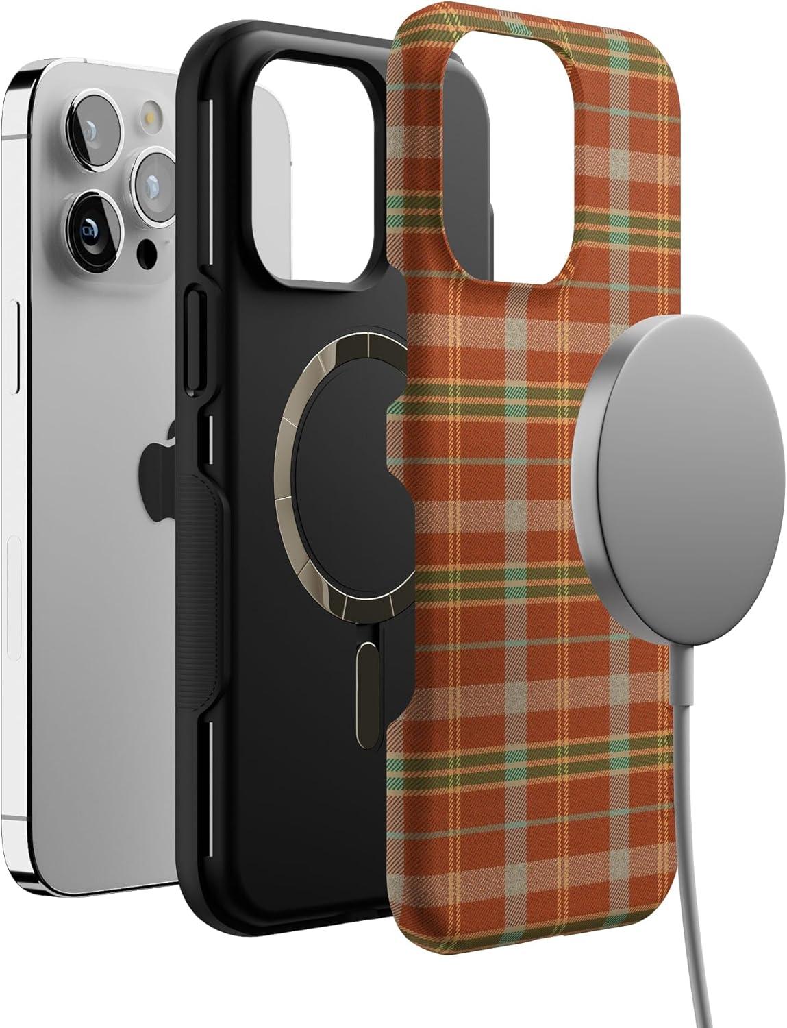 Casely iPhone 14 Pro Max Case | Spiced Chai | Fall Plaid | Bold Protective Design | MagSafe Compatible Design