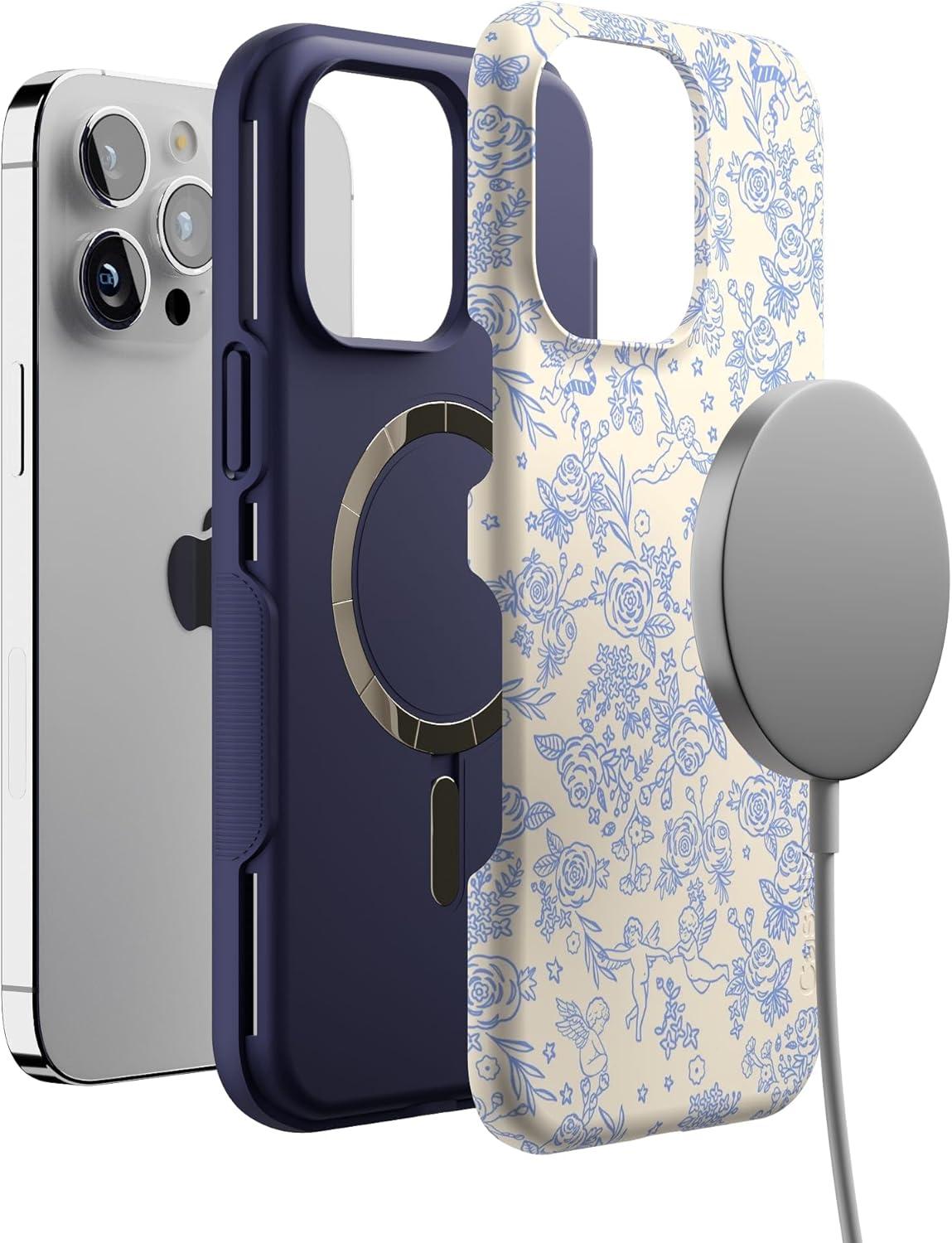 Casely iPhone 14 Pro Max Case | Sunday Best | Pastel Garden | Bold Protective Design | MagSafe Compatible Design(Cupid’s Canvas | Periwinkle Floral)
