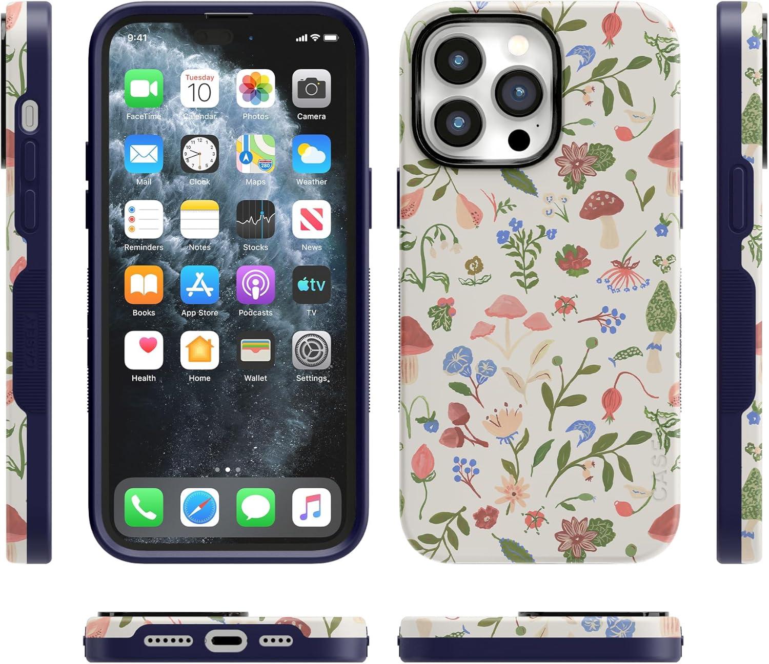 Casely iPhone 14 Pro Max Case | Sunday Best | Pastel Garden | Bold Protective Design | MagSafe Compatible Design(Garden Party | Mushroom Floral)