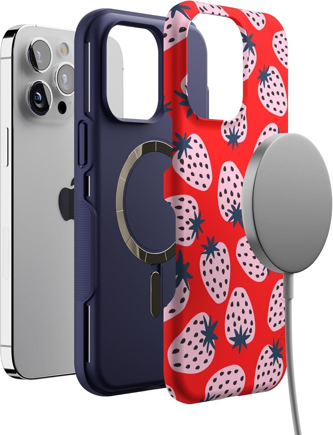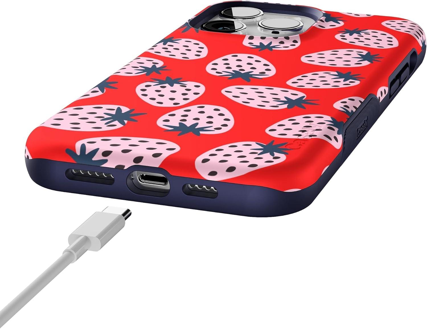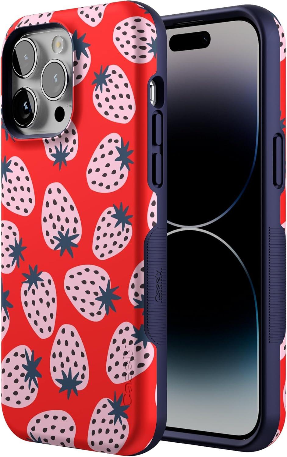 Casely iPhone 14 Pro Max Case | Sunday Best | Pastel Garden | Bold Protective Design | MagSafe Compatible Design(I’d Pick You | Red Strawberry)