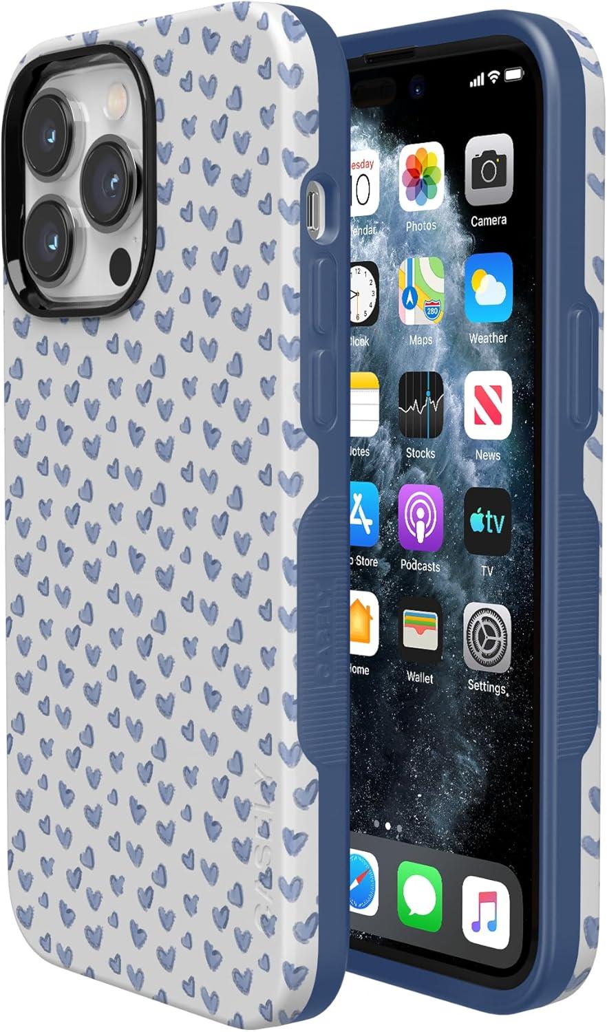 Casely iPhone 14 Pro Max Case | Sunday Best | Pastel Garden | Bold Protective Design | MagSafe Compatible Design(Lovebug | Blue Hearts)