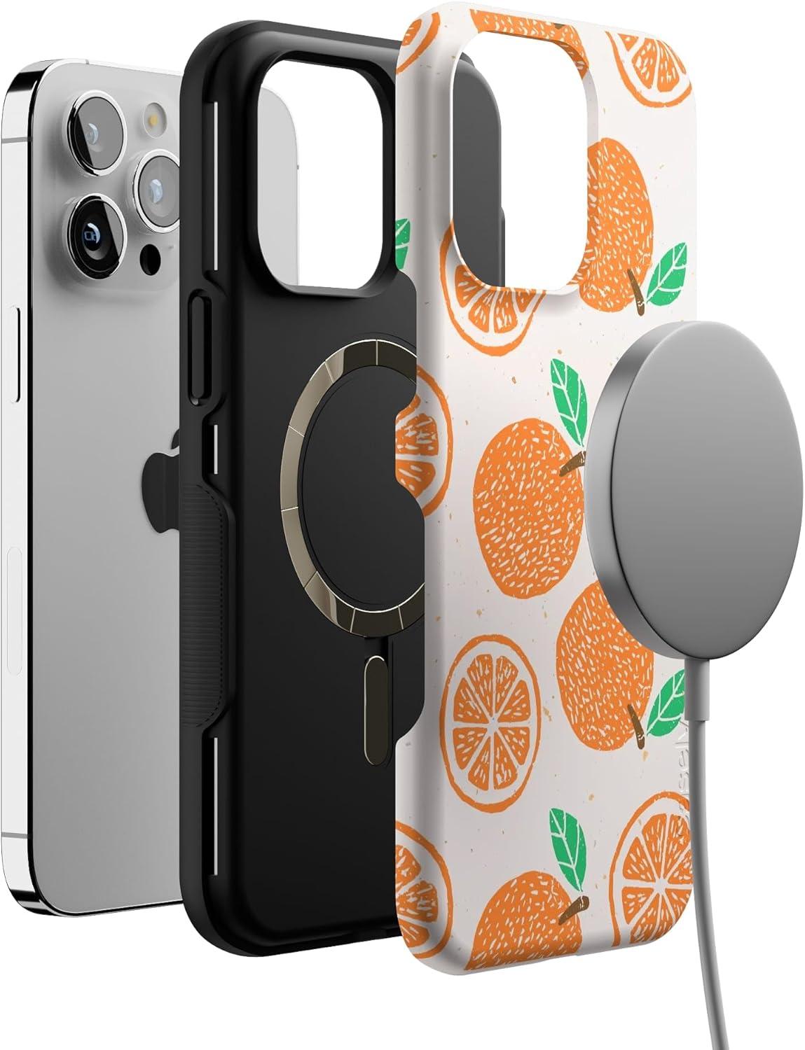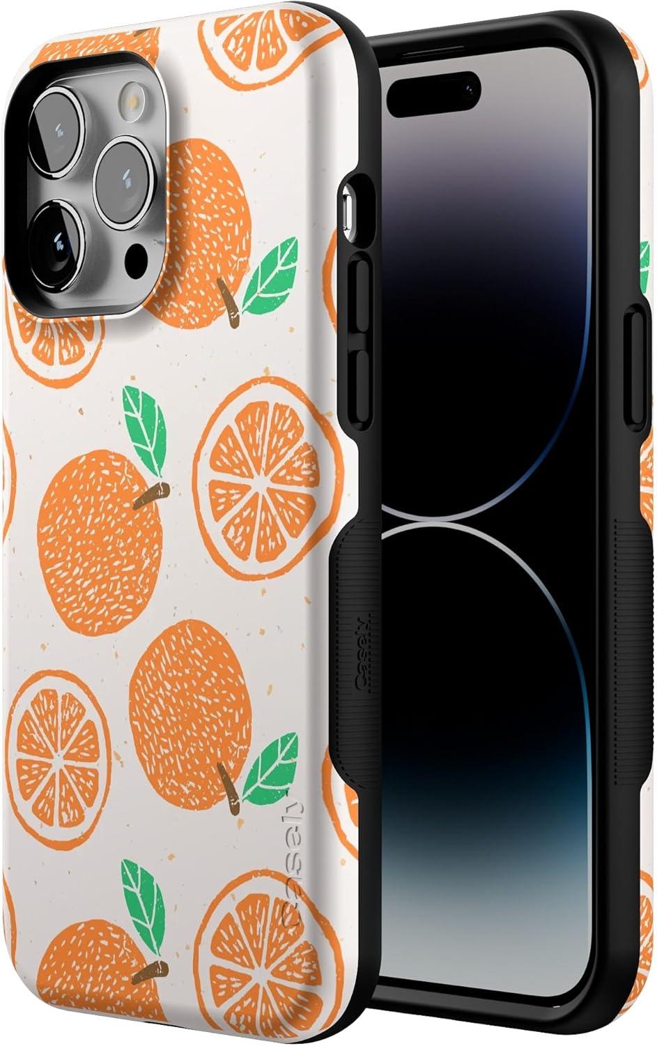 Casely iPhone 14 Pro Max Case | Sunday Best | Pastel Garden | Bold Protective Design | MagSafe Compatible Design(Main Squeeze | Orange Stamped)