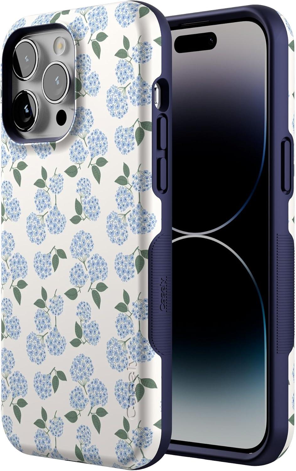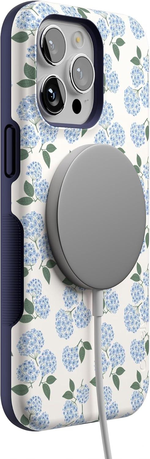 Casely iPhone 14 Pro Max Case | Sunday Best | Pastel Garden | Bold Protective Design | MagSafe Compatible Design(Nantucket Cottage | Blue Hydrangea)