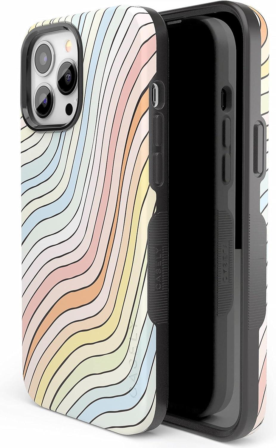 Casely iPhone 14 Pro Max Case | Sunday Best | Pastel Garden | Bold Protective Design | MagSafe Compatible Design(Ride The Wave | Pastel Rainbow Lined)