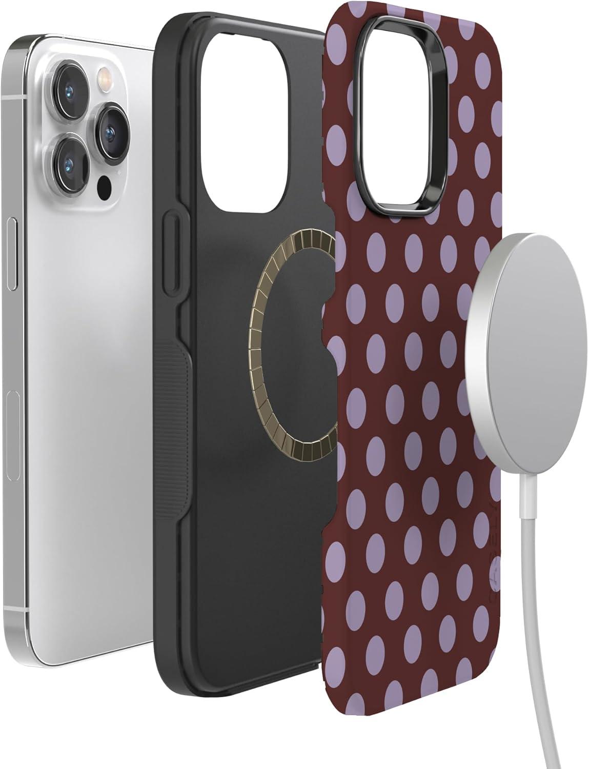 Casely iPhone 14 Pro Max Case | Sunday Best | Pastel Garden | Bold Protective Design | MagSafe Compatible Design(Spotted in SoHo | Burgundy Polka Dot)