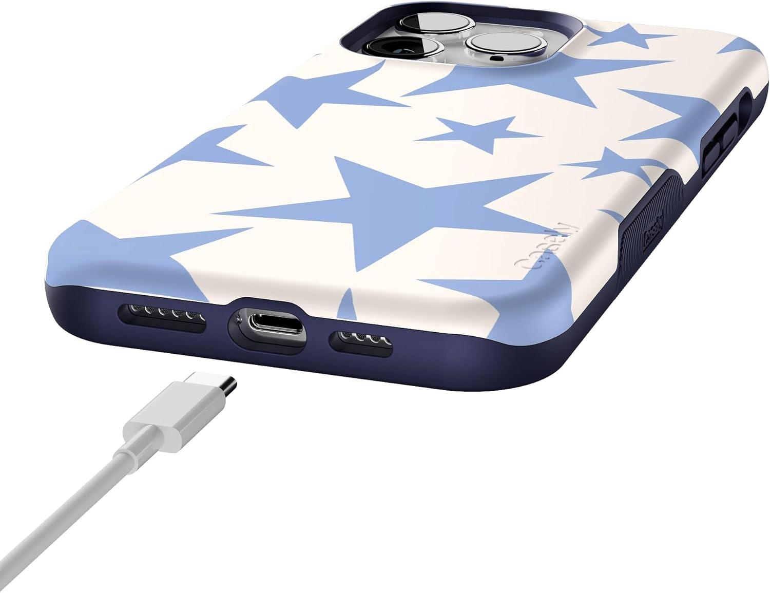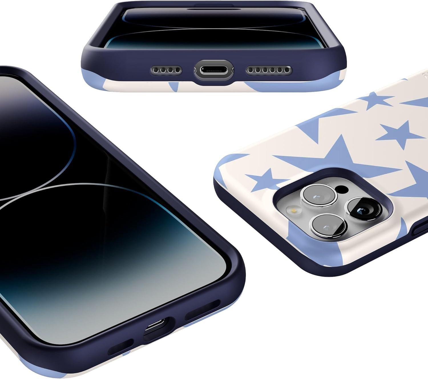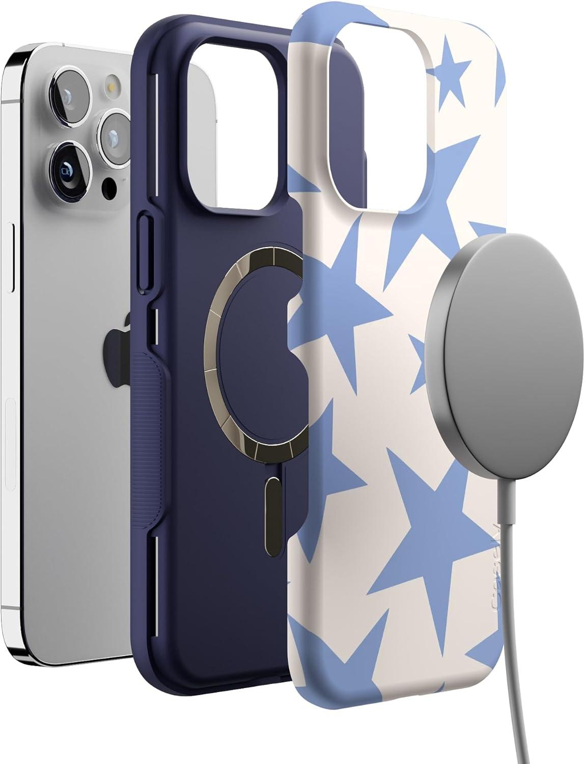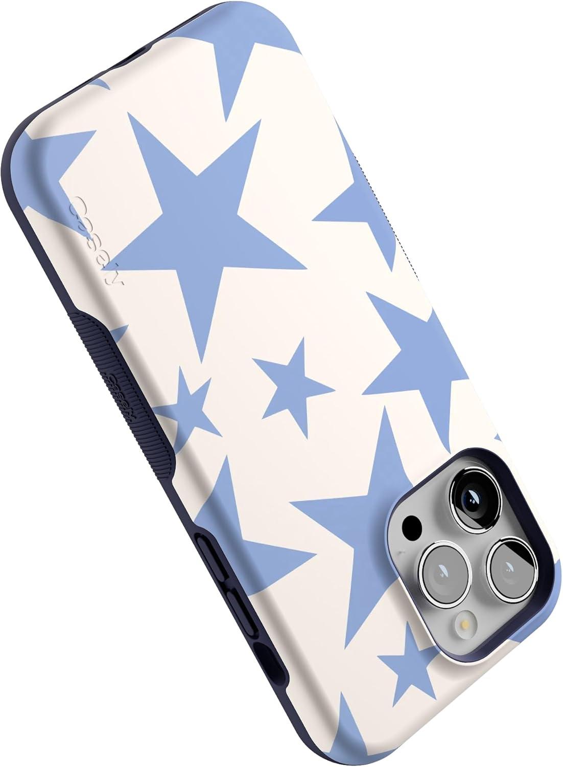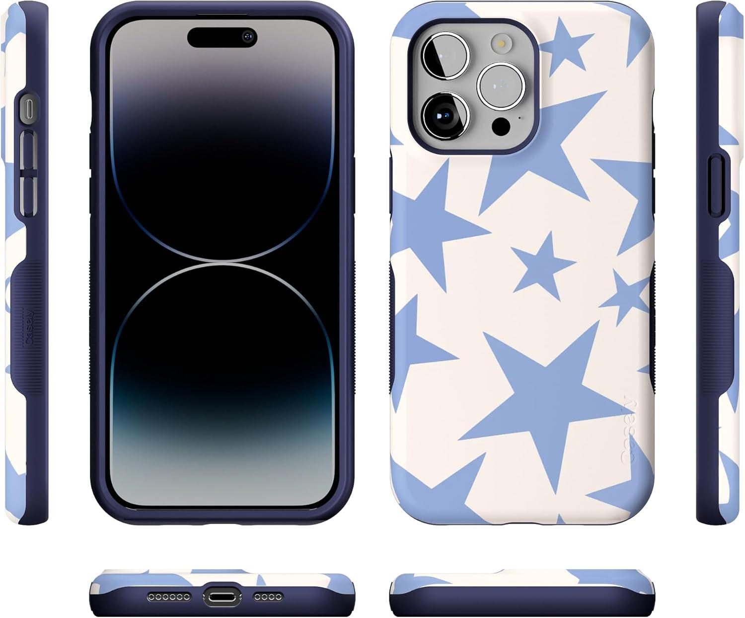 Casely iPhone 14 Pro Max Case | Sunday Best | Pastel Garden | Bold Protective Design | MagSafe Compatible Design(Stars Align | Blue & White Stars)