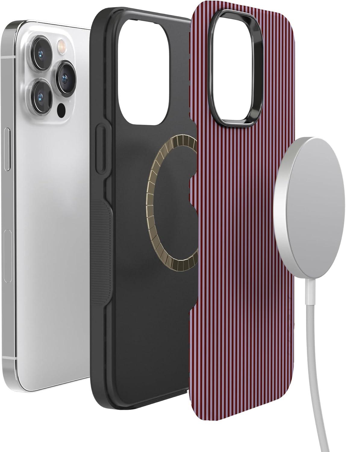 Casely iPhone 14 Pro Max Case | Sunday Best | Pastel Garden | Bold Protective Design | MagSafe Compatible Design(Stripes and the City | Tiny Pinstripe)